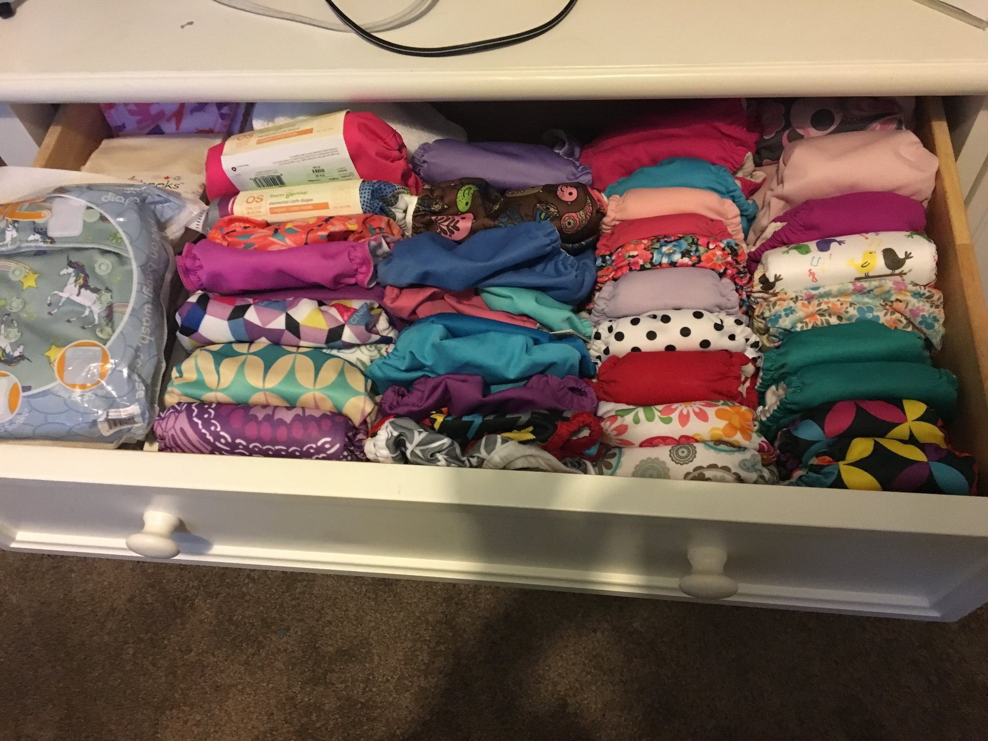 • I am about 1/ 2 way finished with my stash. I have 12 OS Pockets and 9 NB prefolds with 2 covers. Going to get a few more NB prefolds and covers and 12- 20 bigger prefolds with 5 to 6 covers.