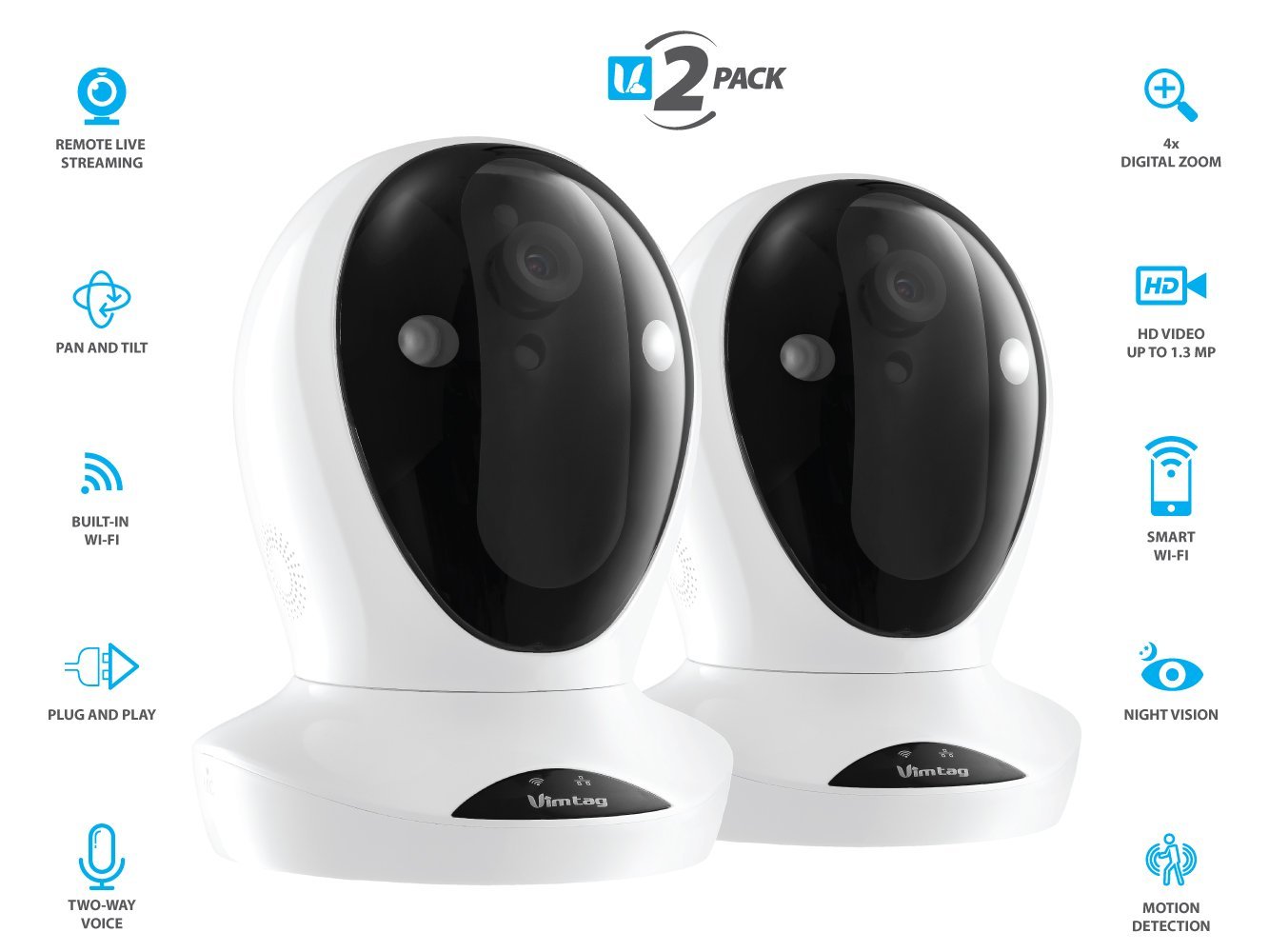 Vimtag ® P1 Smart HD [2-Pack] | WiFi Video Monitoring Surveillance Security Camera, Plug/Play, Pan/Tilt with Two-Way Audio & Night Vision