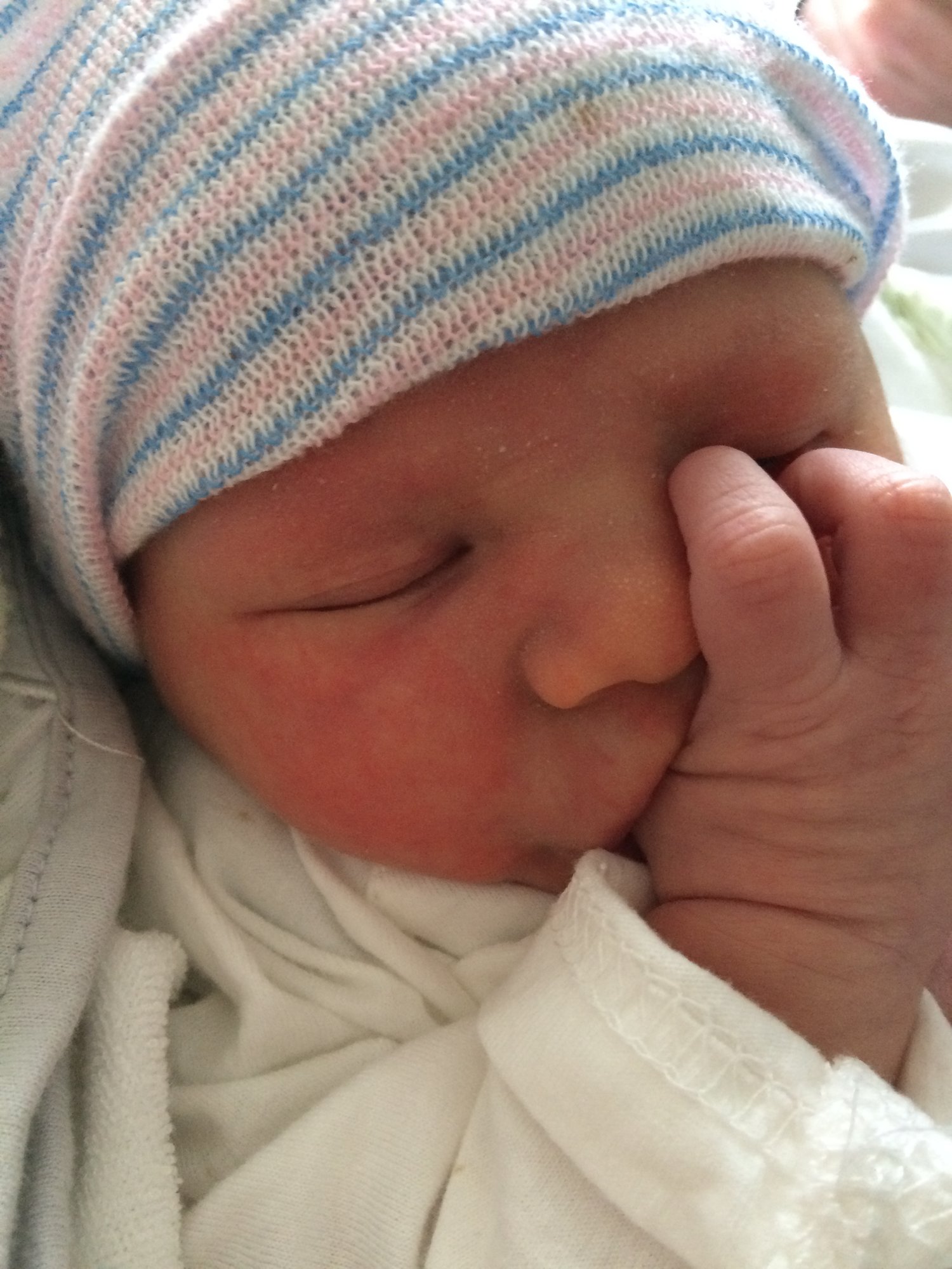 My little one was born at 10:09 pm on 7/17. He was 19 inches long and 6 pounds, 5 ounces.