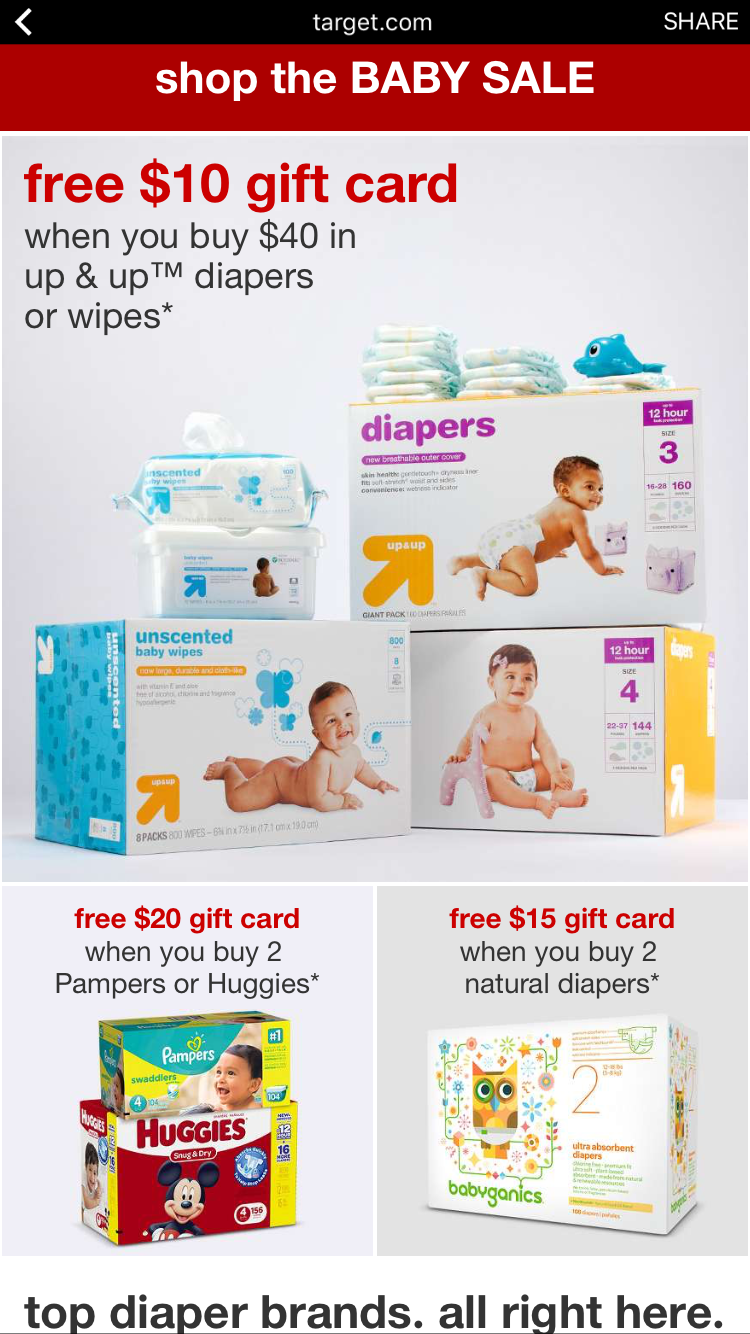 Target just sent me 2 $10 off baby coupons (one was diapers/wipes, i believe the other was general baby stuff) today in the mail! I am not 100% sure, but I'm pretty sure it's because I signed up for cartwheel. So, if any of you haven't signed up for it yet, you may want to!