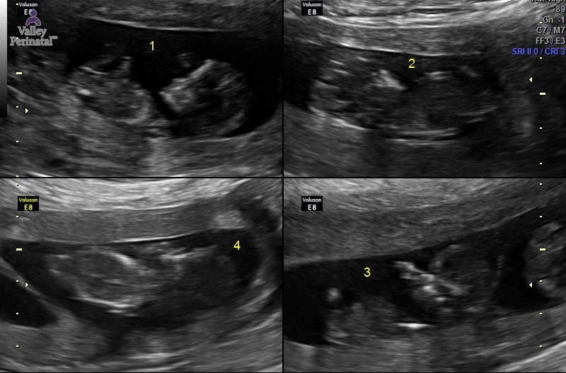 Sorry to be MIA these past few weeks, our big move from AZ to NH is next week so we've been crazy people lately! Today we had our NT scan with the specialist and everything went PERFECT. I was so worried so now that the appointment went well I feel like I can breath a little easier admist our crazy and hectic life we are currently living! Once we move things will be alot calmer and I'll be able to focus more on getting ready for these 4 babies! As usual I will include our most recent ultrasound from today. Baby C has earned the name of trouble maker due to not cooperating during the ultrasound and taking up 45 minutes of the techs time trying to get he/she to move into the right position. The tech also thinks that baby A is a boy and baby B is a girl but I'm not sure if I fully believe her as I am only 12 weeks 3 days! Baby c and D weren't in the right position for her to make a guess of the gender.