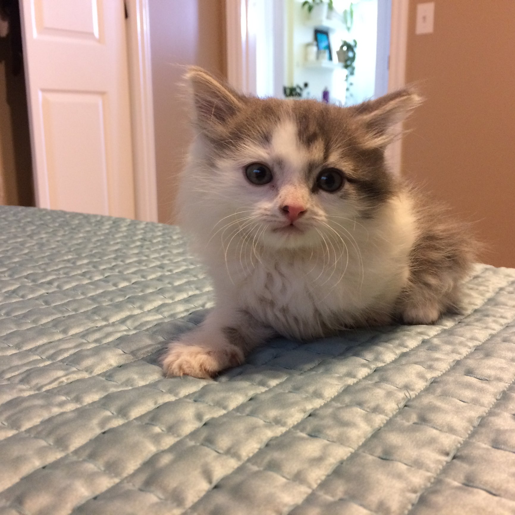 So my friend impulsively took home a kitten from a bridal shower she went to. Once she got it home her boyfriend said no flippin way. So under the guise of bringing me left over shower food she brought me this little guy. I love him so much!