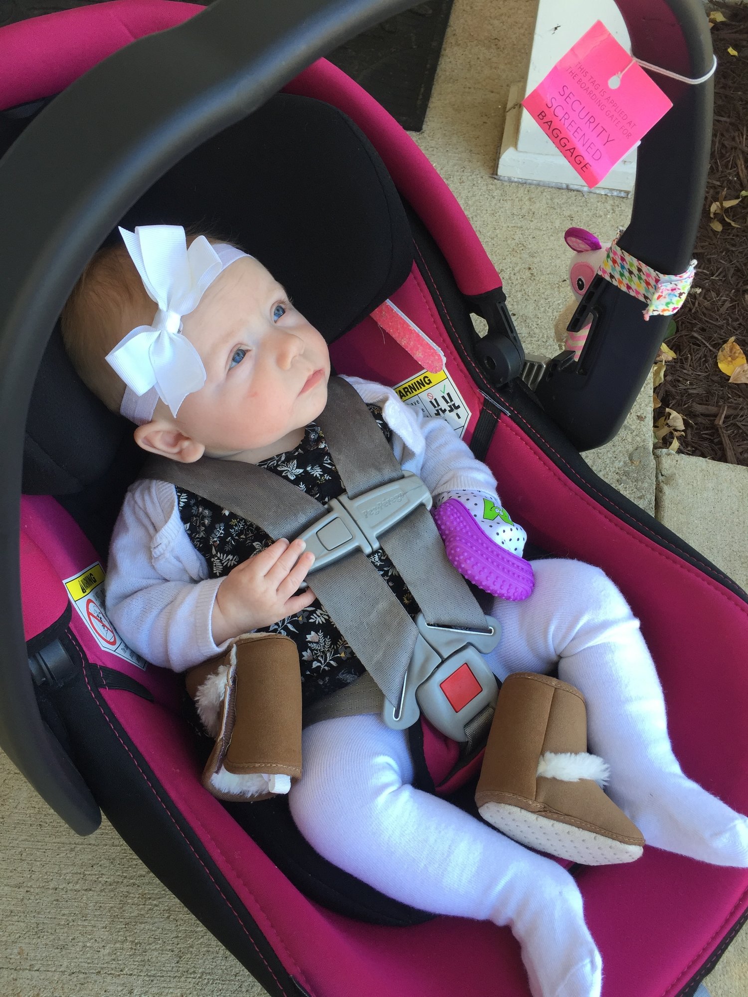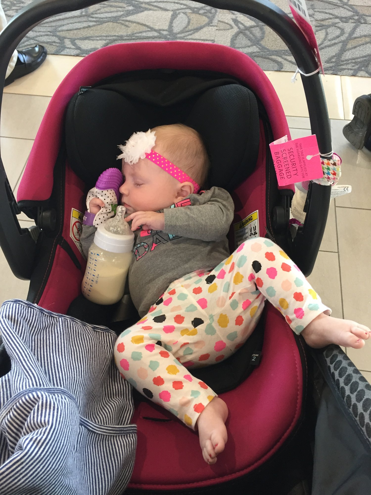 We bought a munch mitt from by by baby. Briar loves it!! So nice because she can't "lose" it. We seen the dr yesterday for her 4 month check and he said unfortunely it's gonna be awhile before any pop through. That's her passed out at the airport waiting for our flight home because of course teething started while on vacation but our little trooper did amazing even while not feeling good!