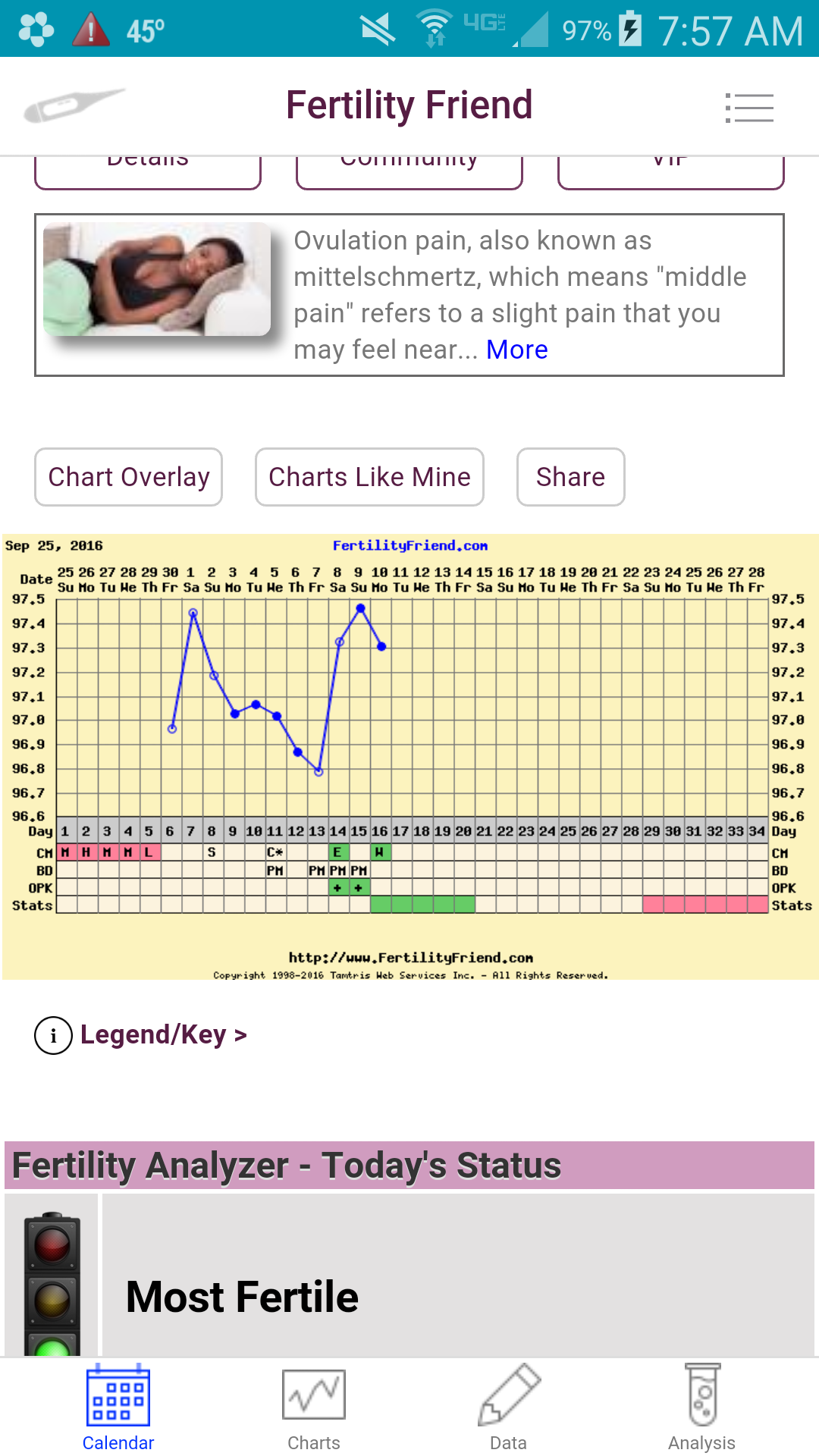 CS/Q: Not really today. These last few cycles have been pretty long for me; FF has predicted my fertile/ovulation days to be the 14th-21st, so we'll see where I am temp-wise during that time and if it matches up. So far, so good..