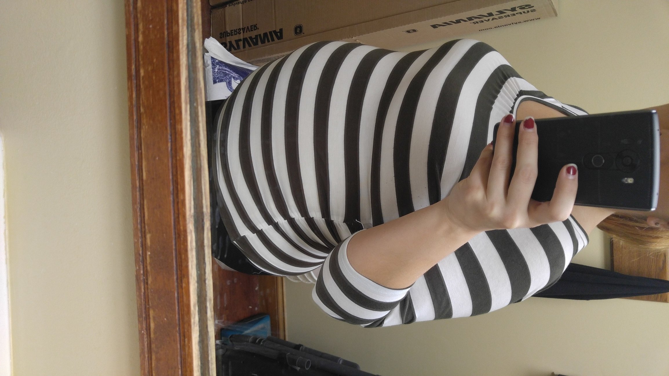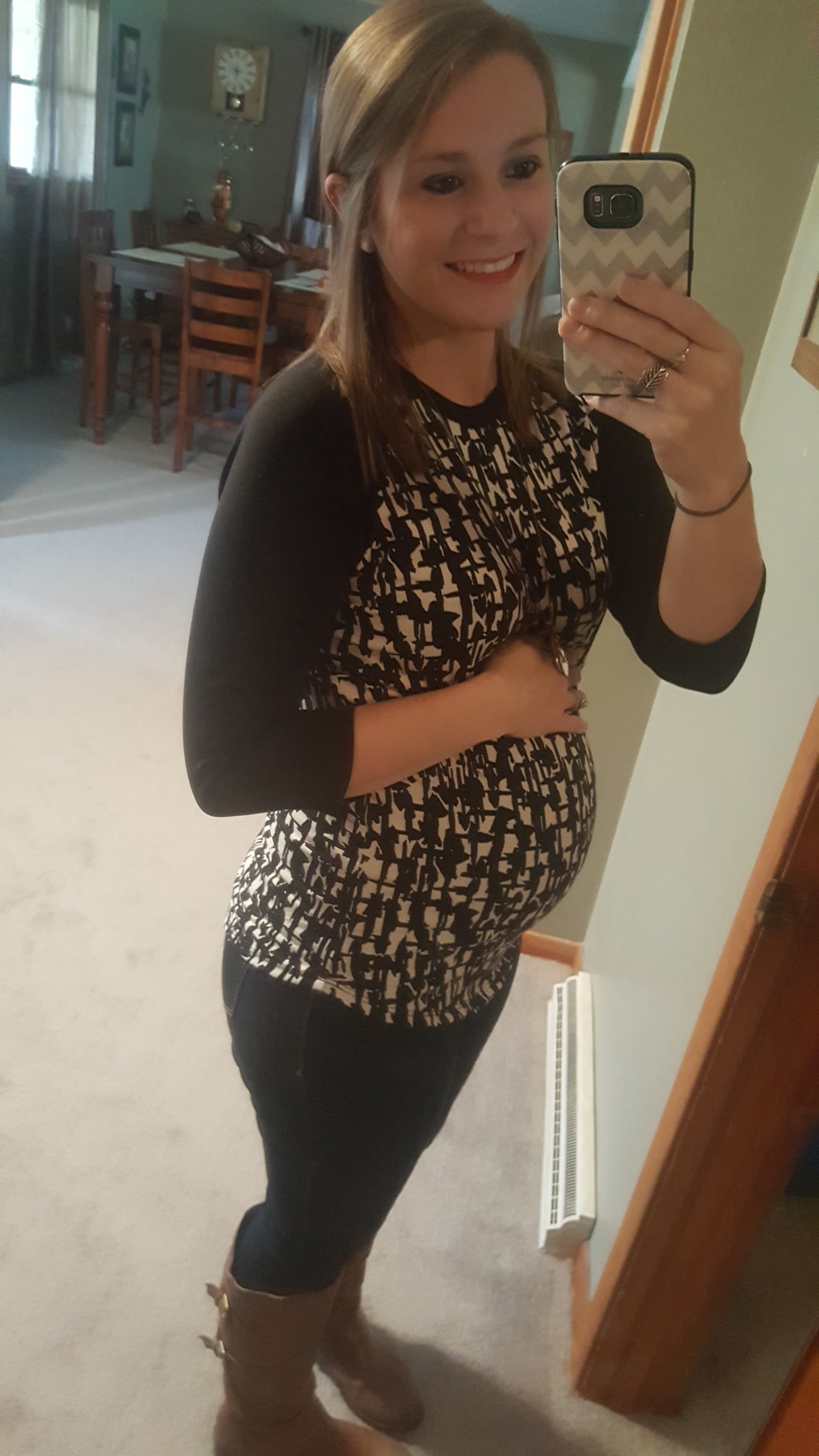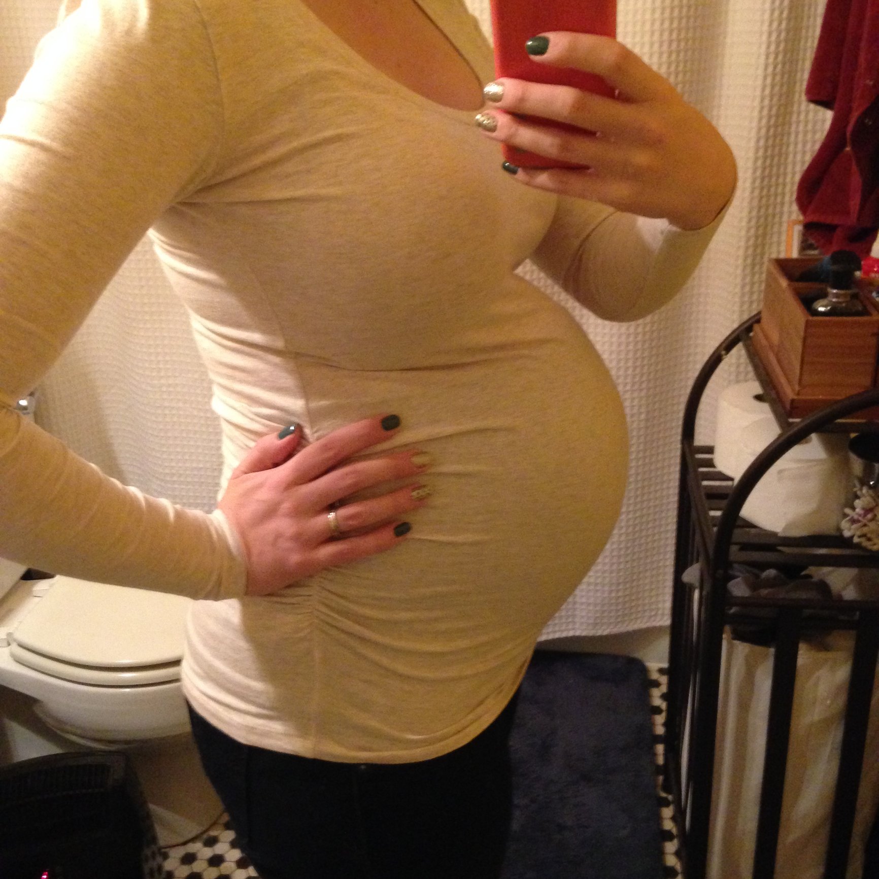 Feeling very large and uncomfortable!! I said to DH while taking this pic "does this shirt make my belly look big" his response was actually it does....oh honey! It's not the shirt! Gotta love him!!
