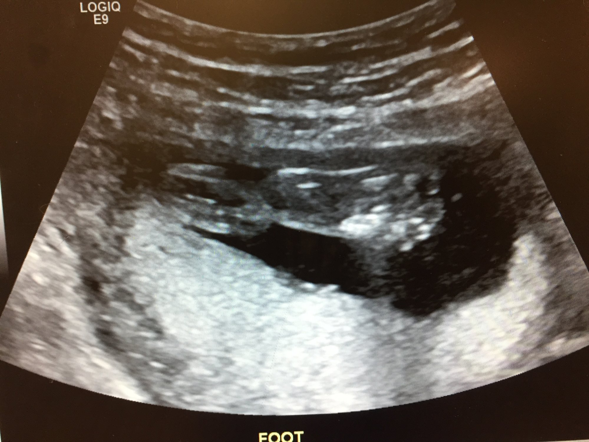 Everything looked great and she is measuring ahead 3 days. She weighs 14.5 oz already and is in the 86th percentile! DH and I both have big feet so we jokingly asked her to measure a foot which was 3.5 cm, the same length as her femur right now