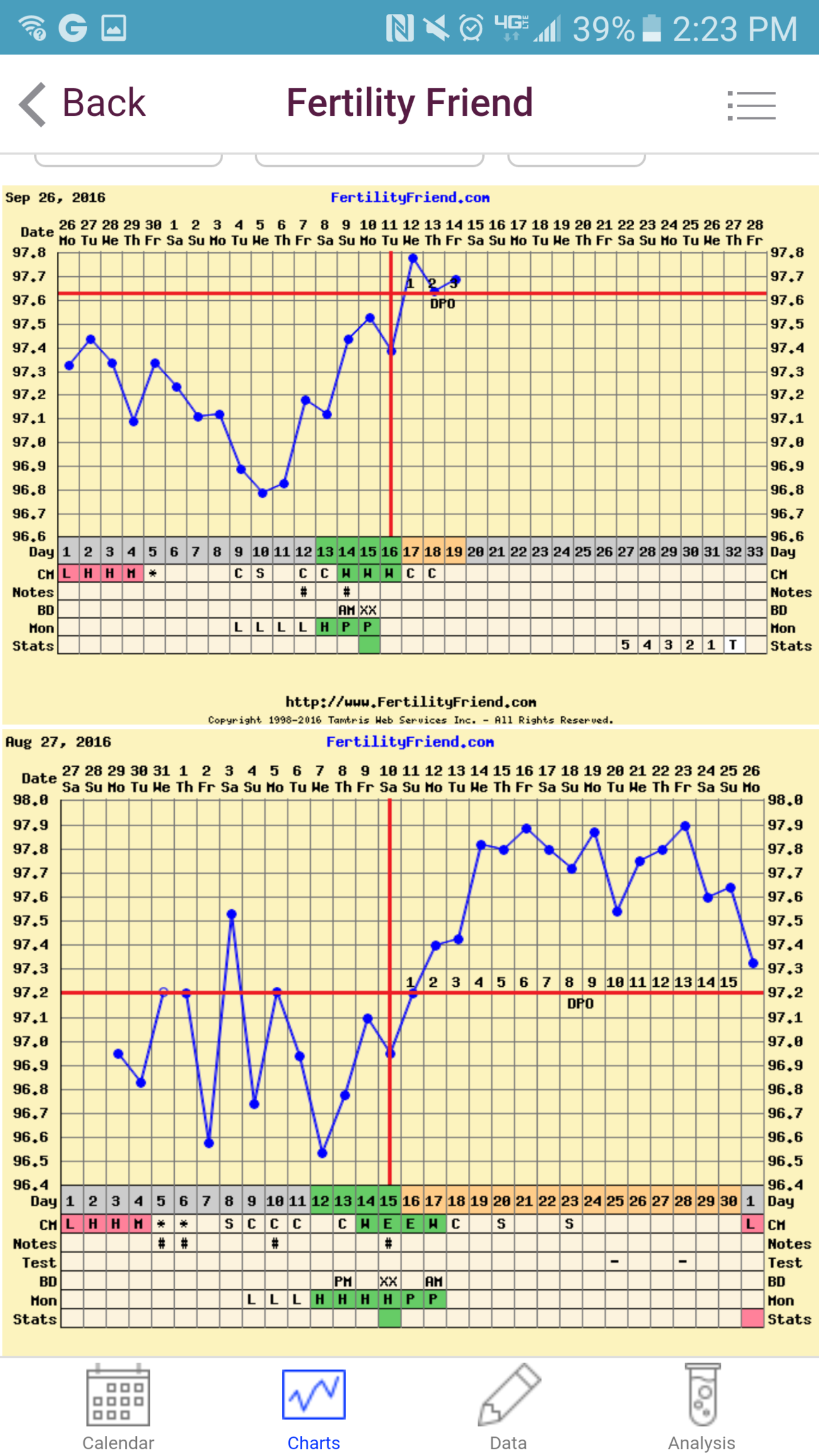 @GlitterFish It might move them. I wonder if it's wrong on O date? CD 13 seems to be a candidate. To me. But I suck at CS. @oscuma I've wondered about thermometer maintenance when temping vaginally. I've heard that vaginally seems to be more stable and less prone to variation based on outside factors. But, it can vary significantly from oral temps so you don't want to switch mid-cycle. @JuneRoseRuby If he's doing the stuff to get ready for his friends to come over, just let him do it his way. Bed made all wonky? They'll mock him for it and then he gets corrected without you having to do it! @zwink1 I finally had to ban myself from watching Criminal Minds and stuff when H isn't home. I'd always get myself all worked up. @hartmich Keep talking about it as much as you want. There's an ebb and flow with support. It's okay to not be the resident Pollyanna right now. It gets more manageable, though. I promise. I'm the same with FF. It's like if I just figure out this puzzle, I'll get my BFP prize! @LuND *off to add really long straw to Amazon cart* @wabash15 I'm with you. I admit that while I'm really happy for everyone, including a friend who has been here a long time, there are also some sad emotions. But, hooray for science. I think sometimes about how things were before there were other options. @laurad75 Sorry for the BFN. @GeorgiaWife6912@oscuma I'm more of the 'if a fair number of people will recognize and be happy for you' mindset. I have been sad when I was lurking BMBs and saw someone I recognized who hadn't posted because the goal isn't to make people feel like they're not deserving of the celebration and a send-off. It's just that there are people who want to pop in at about 7DPO and then post a grad announcement. Also, did you genuinely interact with anyone or did you just spew your own stuff into the wind? Mostly, I think people know in their hearts if it's the appropriate, kind thing to do or if they're just being AWs, other people's feelings be damned. (So people like you two, yes, do post. ) As far as what @adirat said about a one-month unicorn who posted her BFP, I seem to recall that part of her problem was mentioning something along the lines of not knowing what she did to deserve this [the BFP], which implied that BFPs/BFNs are on a basis of deserving, and you could extrapolate that to mean that those who are having a hard time getting KU somehow deserve that. She had some other poorly considered wording in there, too. Mostly, it's a matter of being kind and thinking about others. @RunRestRepeat Hope you have a great race! @adirat That gif is mesmerizing.
