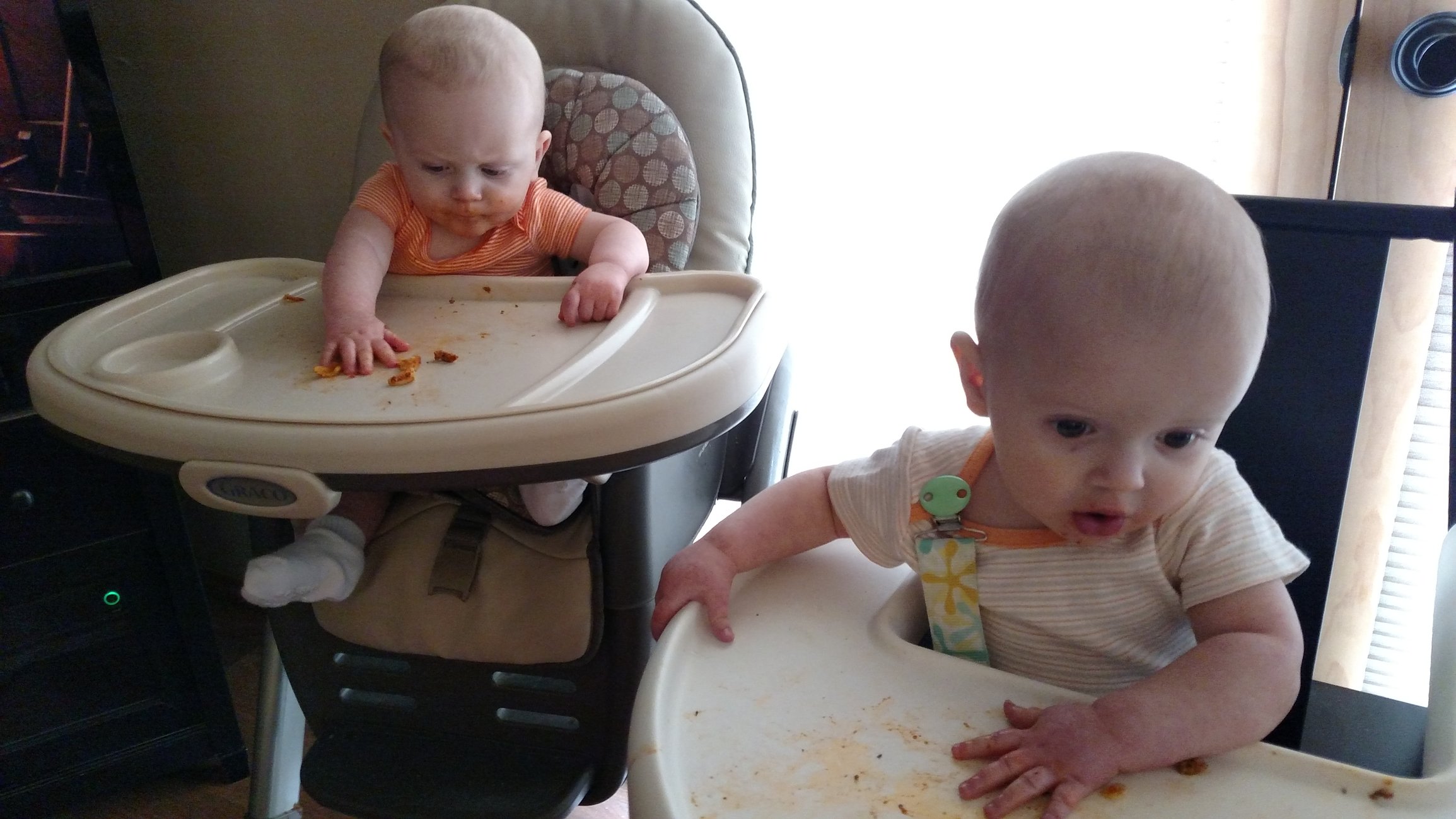 @meggyme Charlotte does that with her melts but that's about it. At dinner I just give Charlotte a little at a time, do you just put all the food on her tray? I have Charlotte's food on the table and then put a little on her tray at a time because she's realized the dogs want her food and she's started feeding them. She dumped a whole bowl of broccoli on the floor for them one night and that was my wake up call.