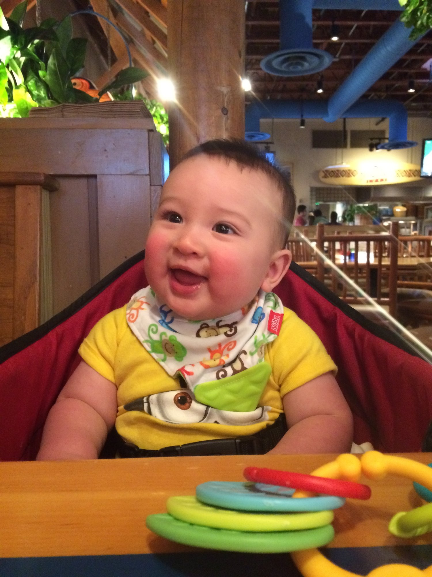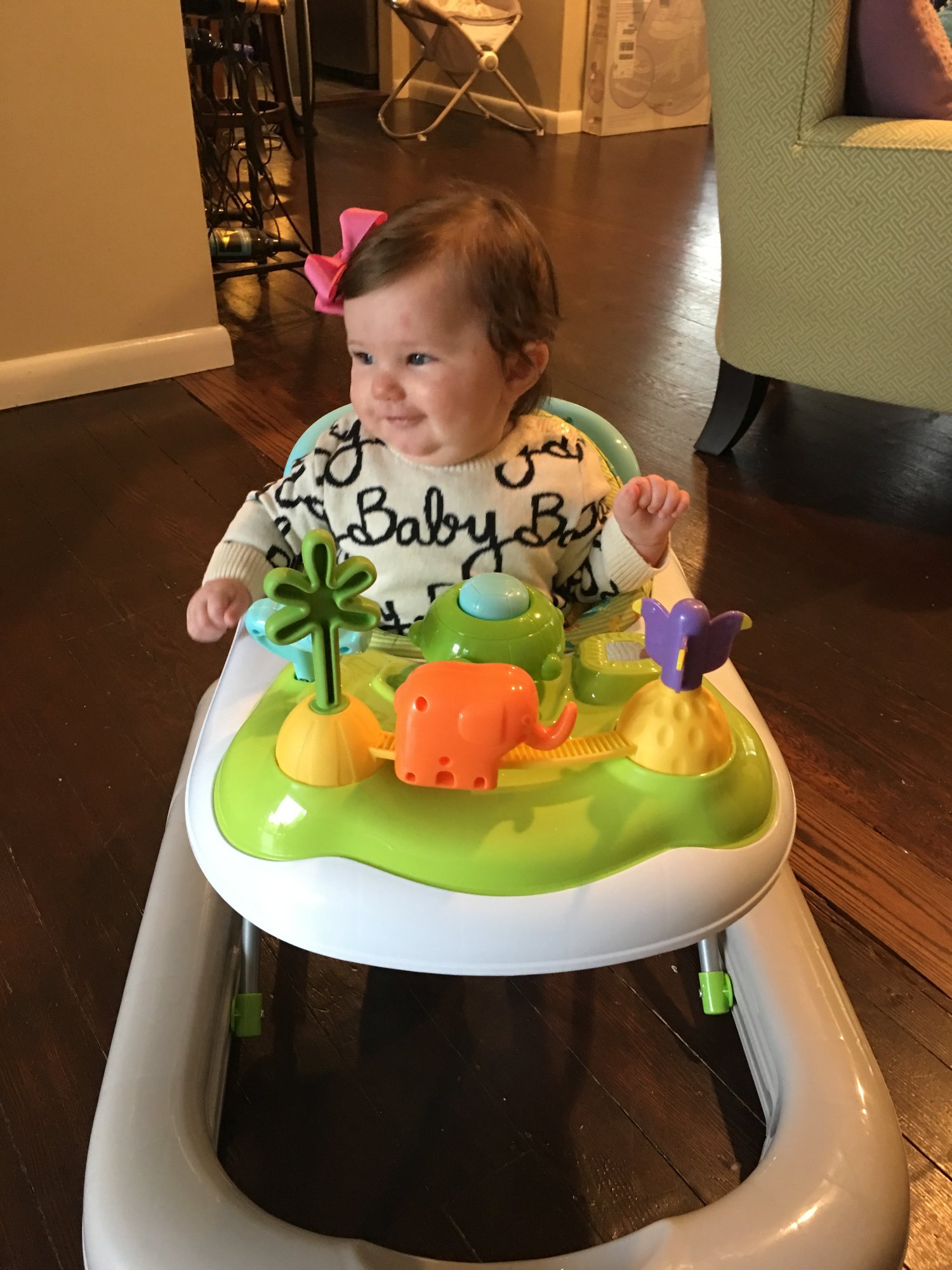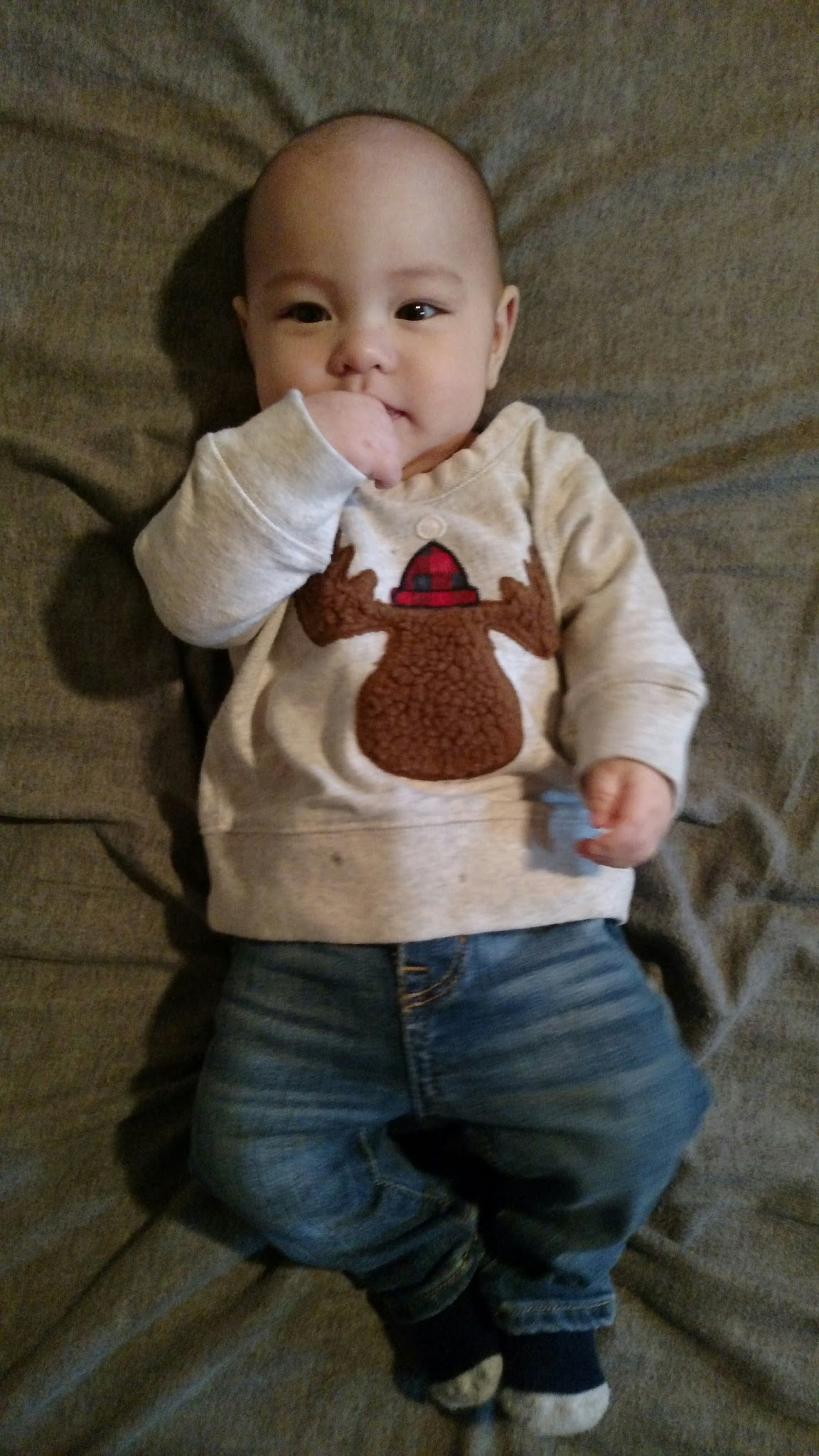 • Charlotte will be 6 months on Saturday. She pulls herself up in her bouncer and swing and likes to just sit up. She's been munching on her hands nonstop but no sign of teeth. I love seeing how big all our babies are getting.