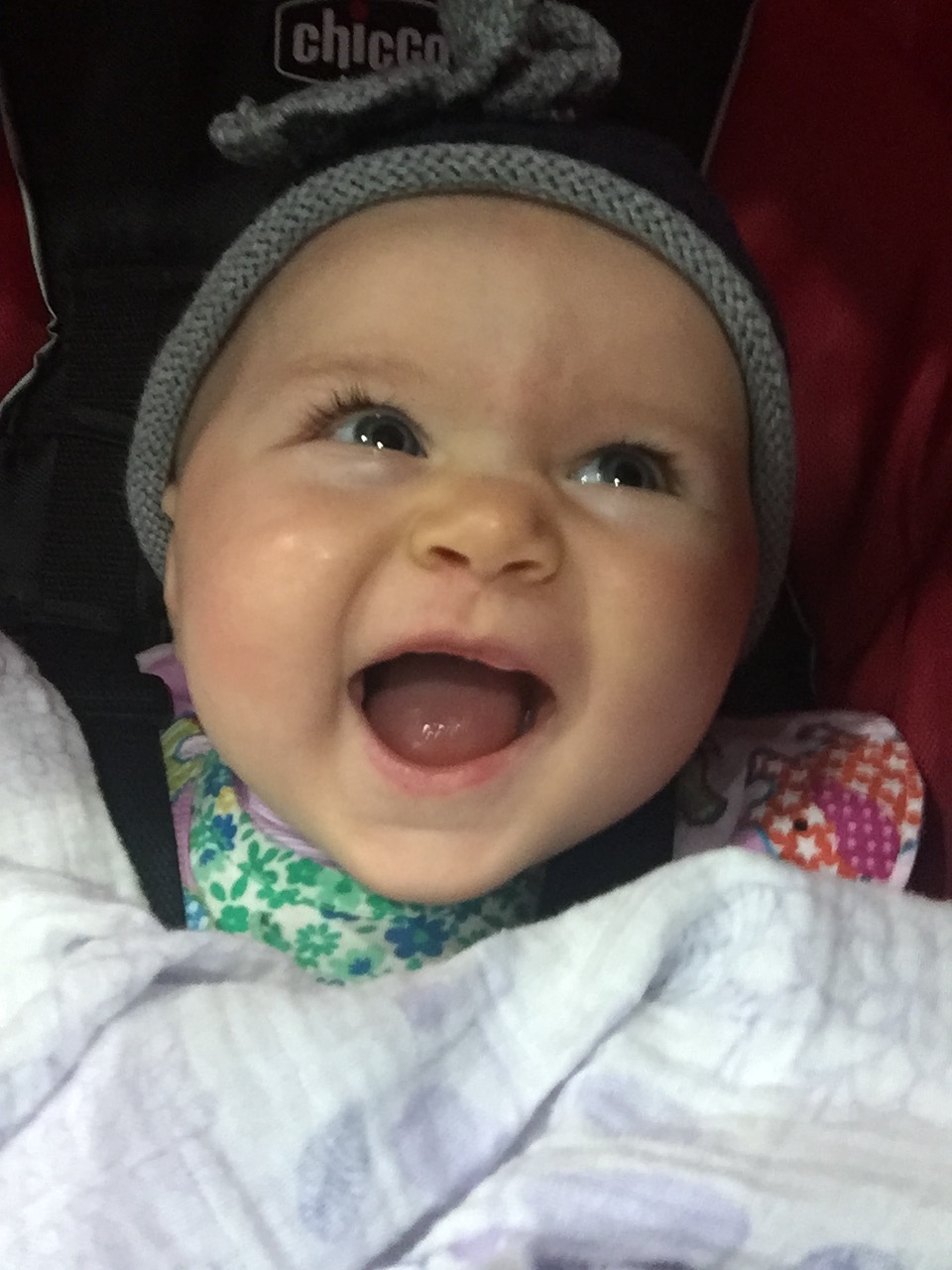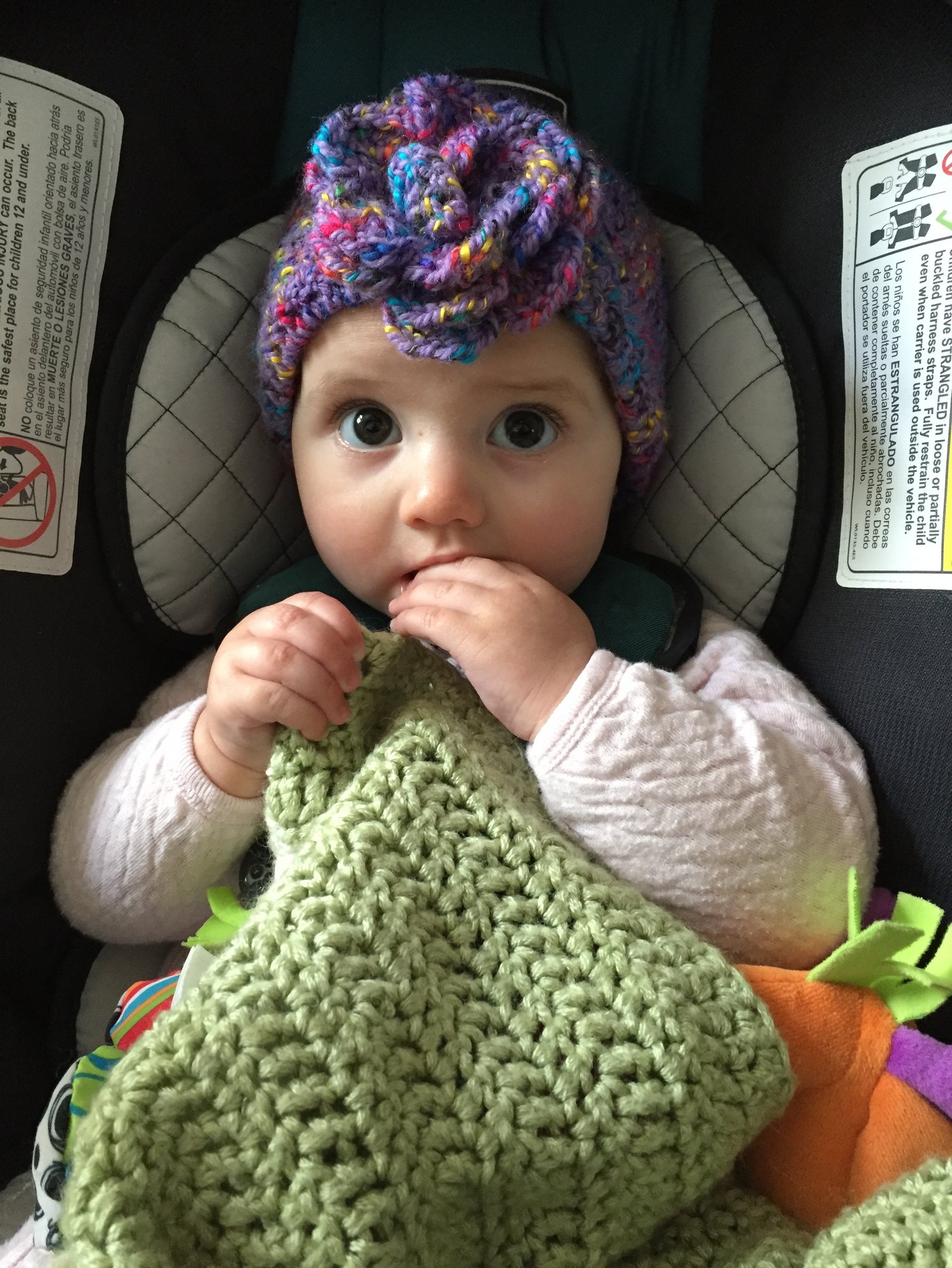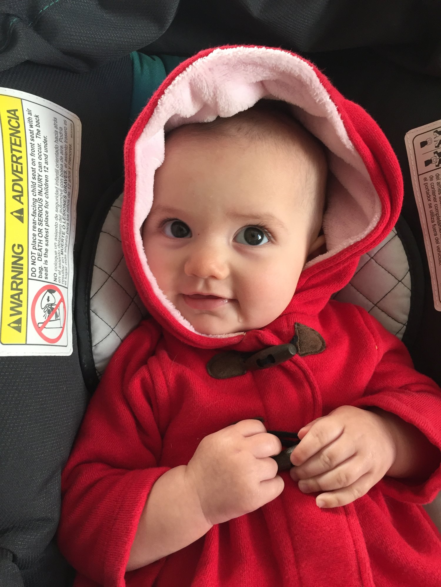 Had to upgrade to a full size car seat no more carrier. This big girl out grew it before Xmas so gramma gave us the seat early. She loves it. Lily is 5 months wearing 9 month and some 12 month clothes.