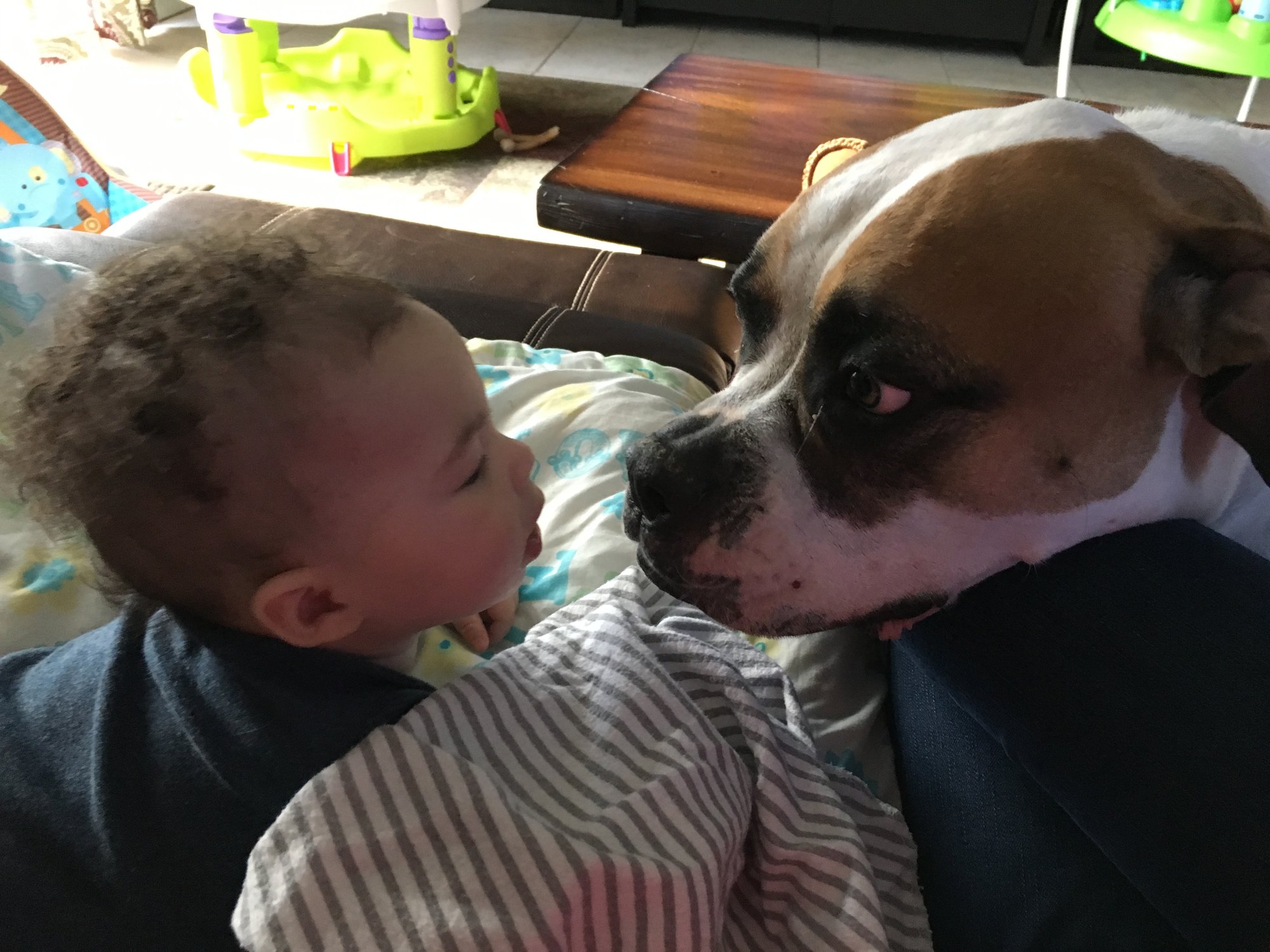 Cameron getting some love from one of his sisters. 6 months on the 10th.