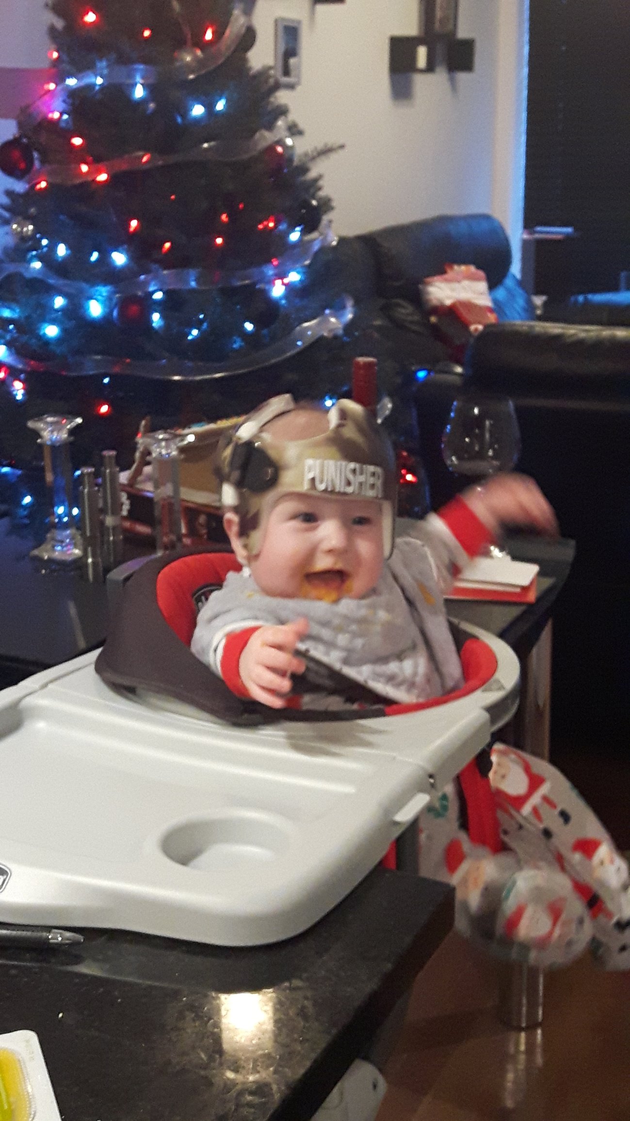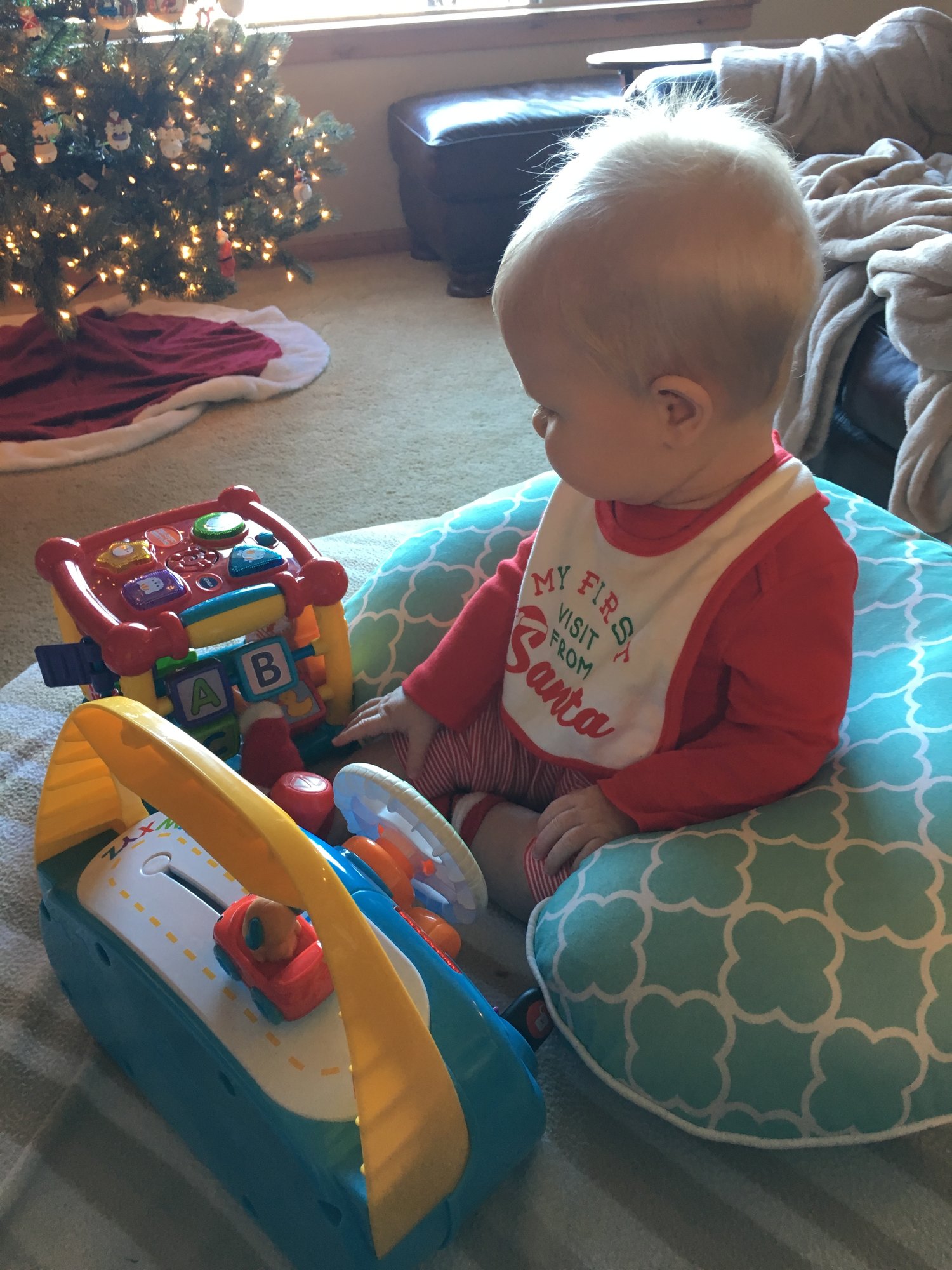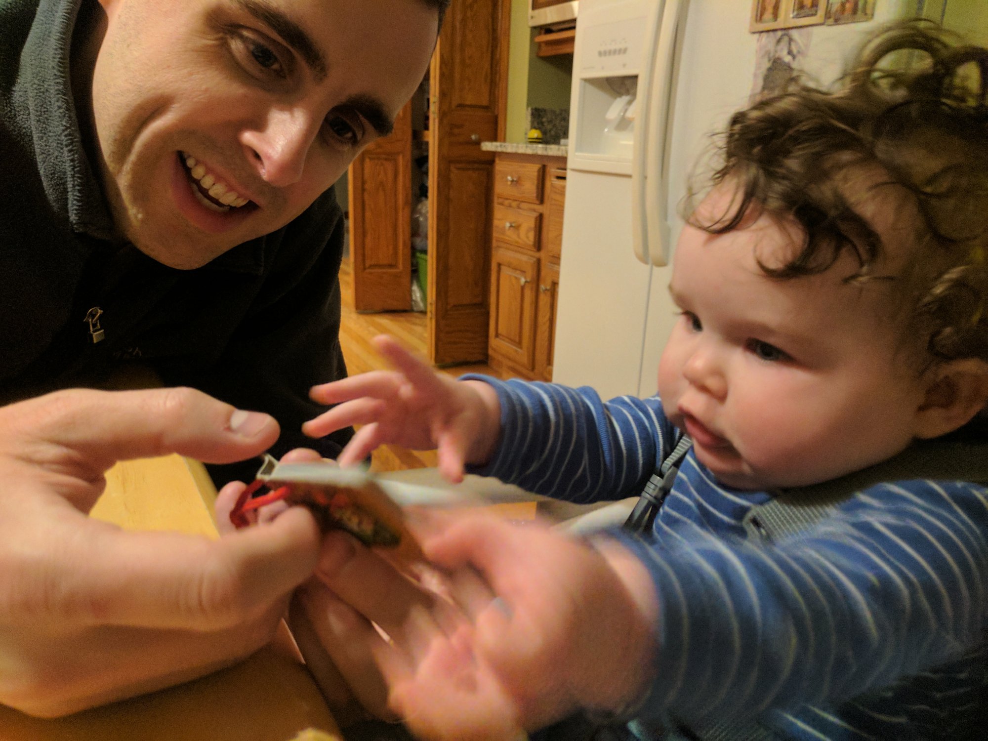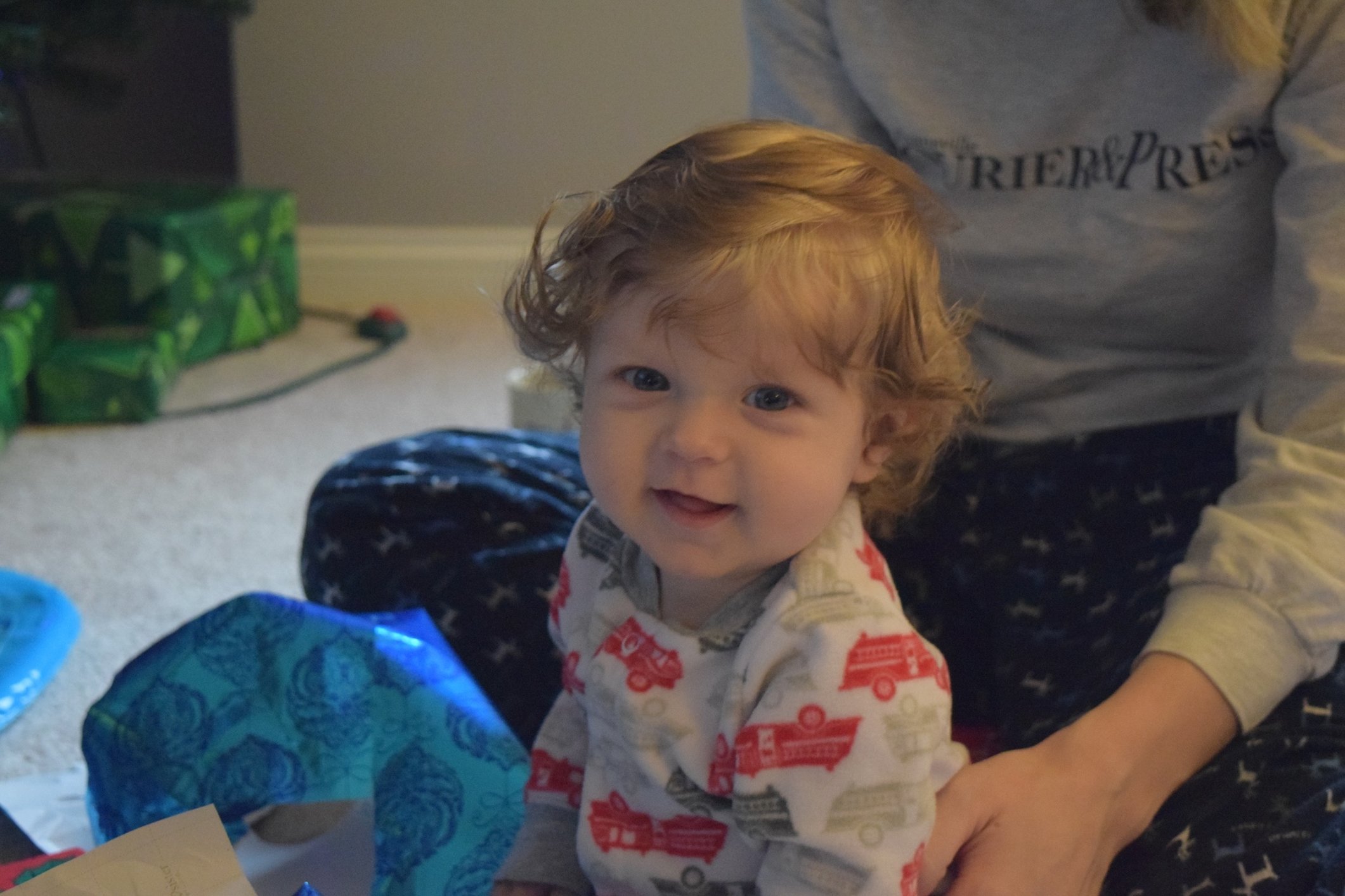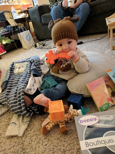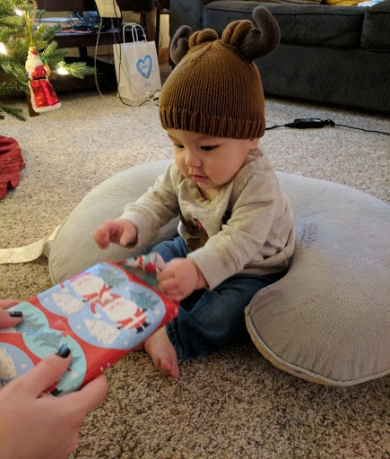 Damien tried lentils today and loved it! He enjoyed unwrapping his presents but I think he liked eating the paper afterwards even moreso.