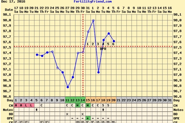 I was planning on posting in the WTO or the TWW but I don't know where I belong. Little background(I posted in the Newb intro but wanted to give the info here as well). I went off the pill in August and have yet to have my period. I met with my OBGYN in December and she wanted to wait a little longer to see if my period came back naturally before inducing it. I've geared up for O several times but have yet to confirm O with temping. FF gave me crosshairs(which would make me 17DPO) but I don't know. I think I'm still annovulatory. I got a positive OPK this week and have had fertile CM and have had several BFNs. A chart stalk is much appreciated and I will take any and all advice!  Thank you in advance!
