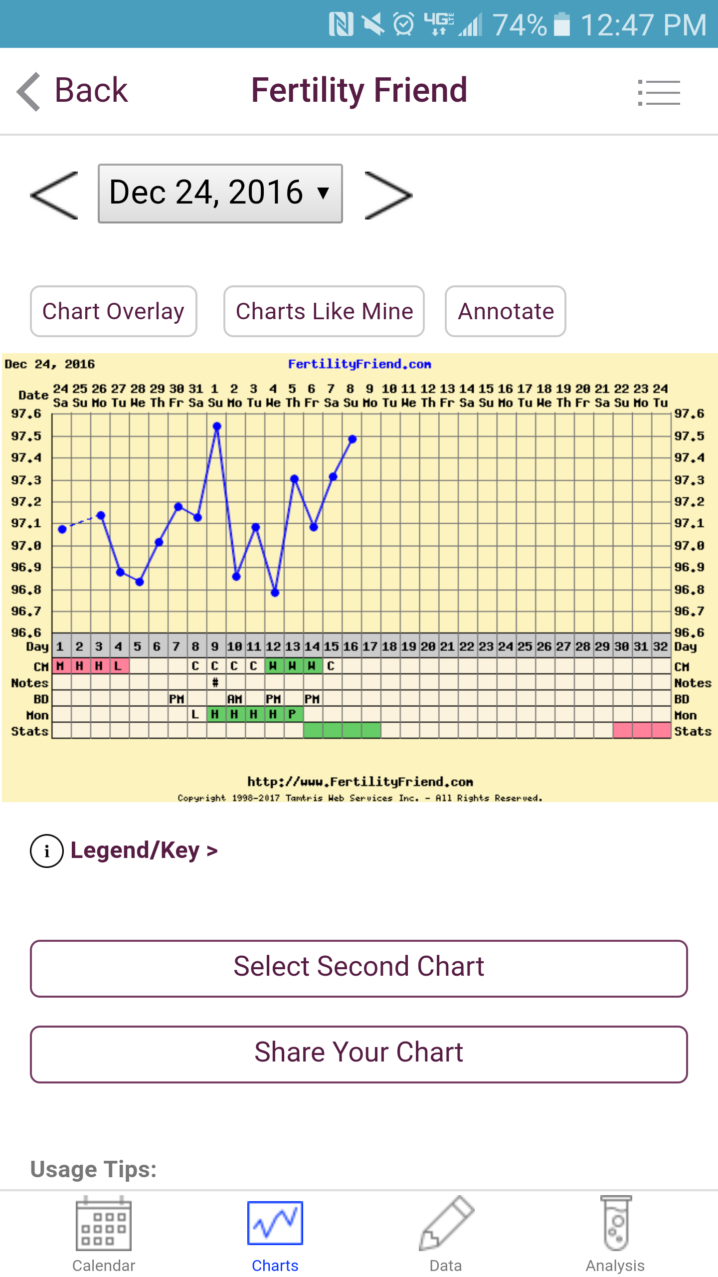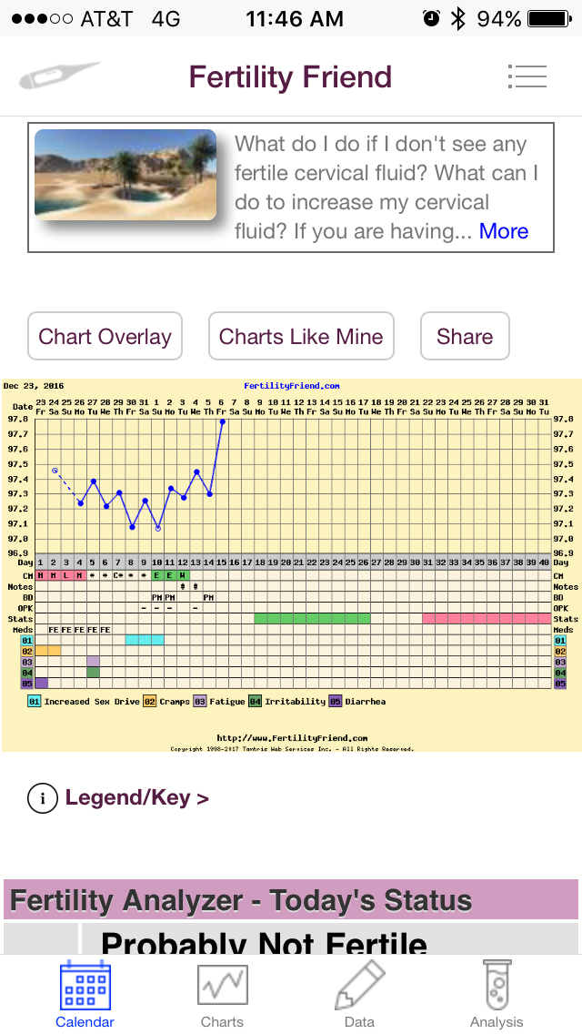 This is a thread where anyone can feel free to request a chart stalk, second-guess FF's interpretation, or post chart-related questions, regardless of where in your cycle you are. Sometimes FF is wrong. That's where we come in. Get your second opinion here.