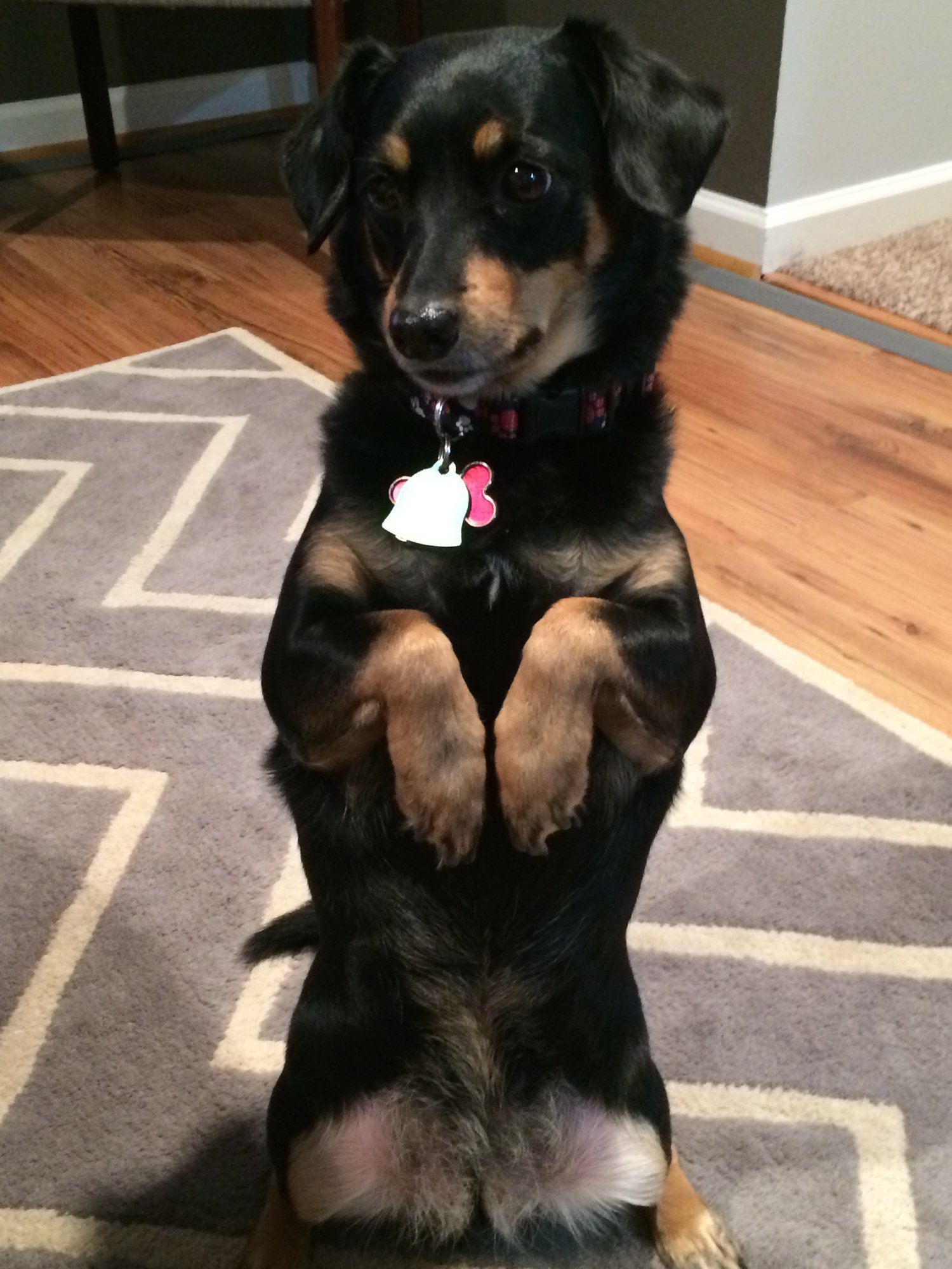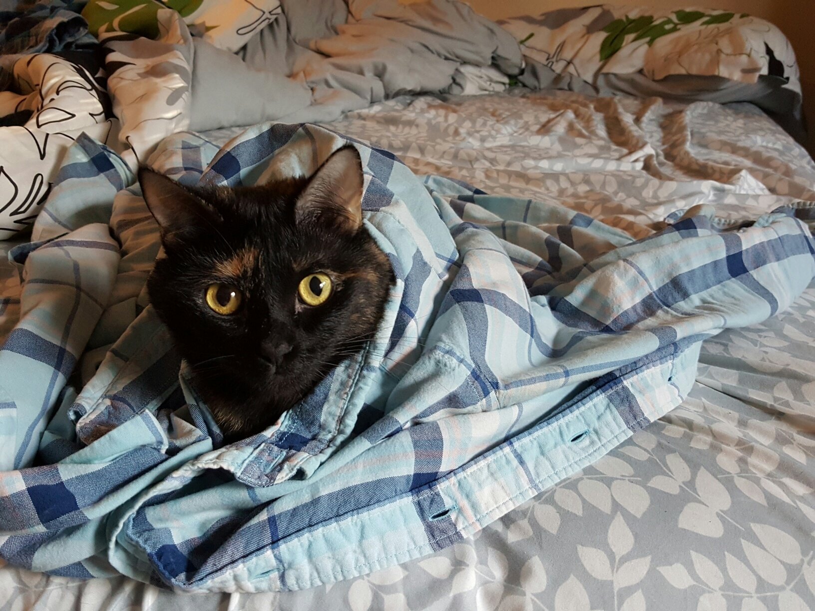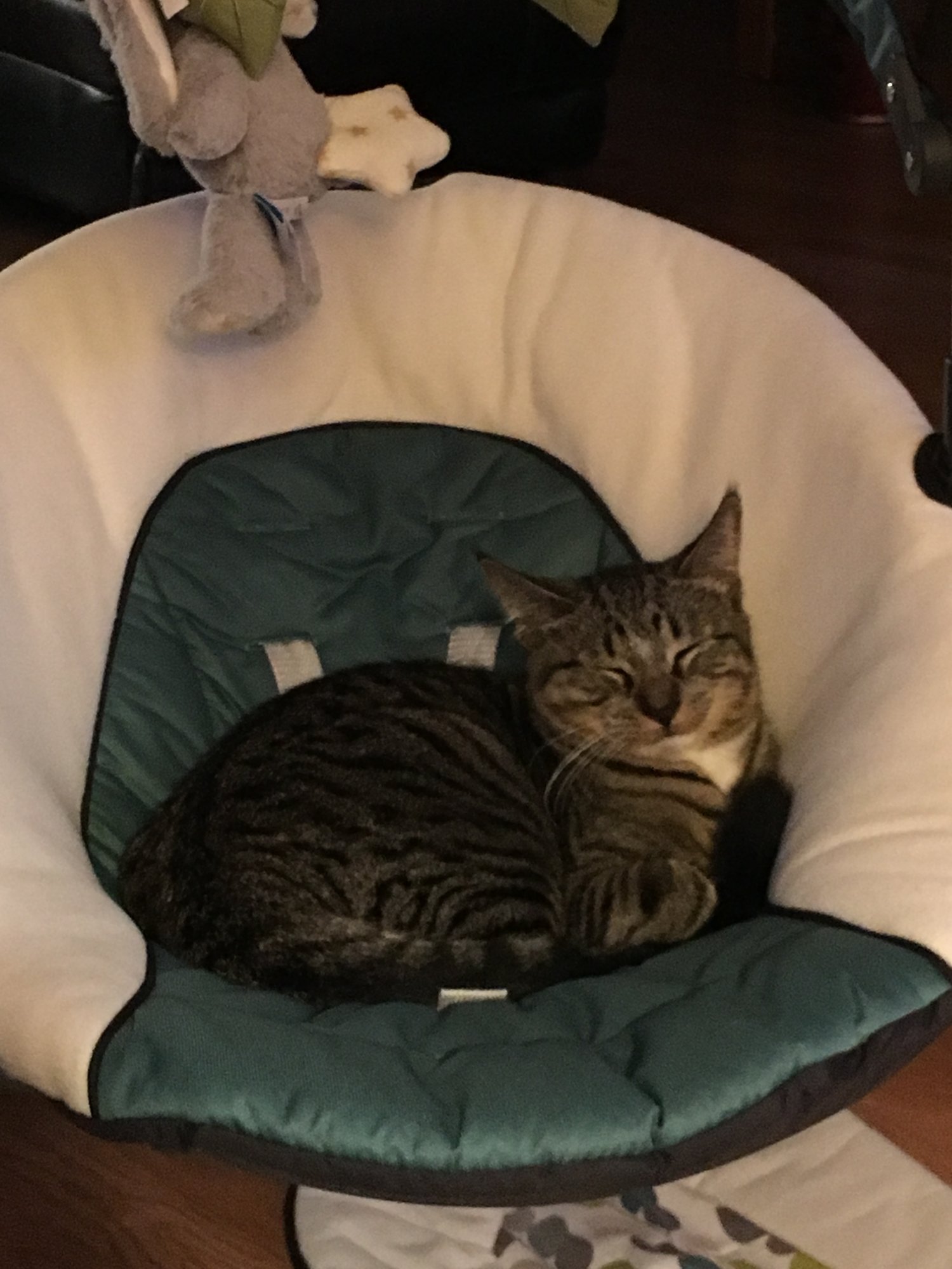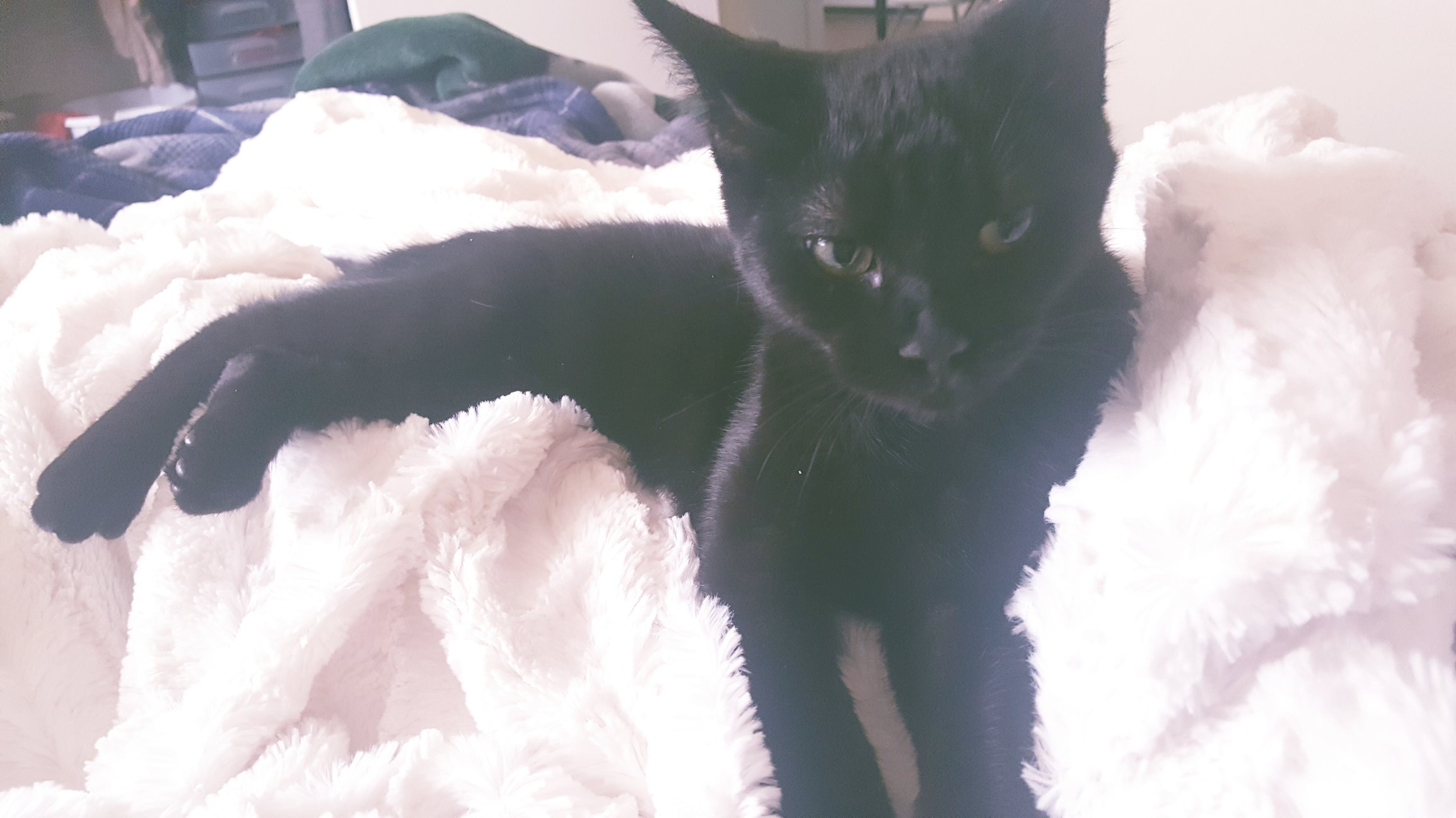 Bella- tiny cat who has a pretty mild case of Manx Syndrome. We have lots of bathroom related issues with her, but she is super sweet.
