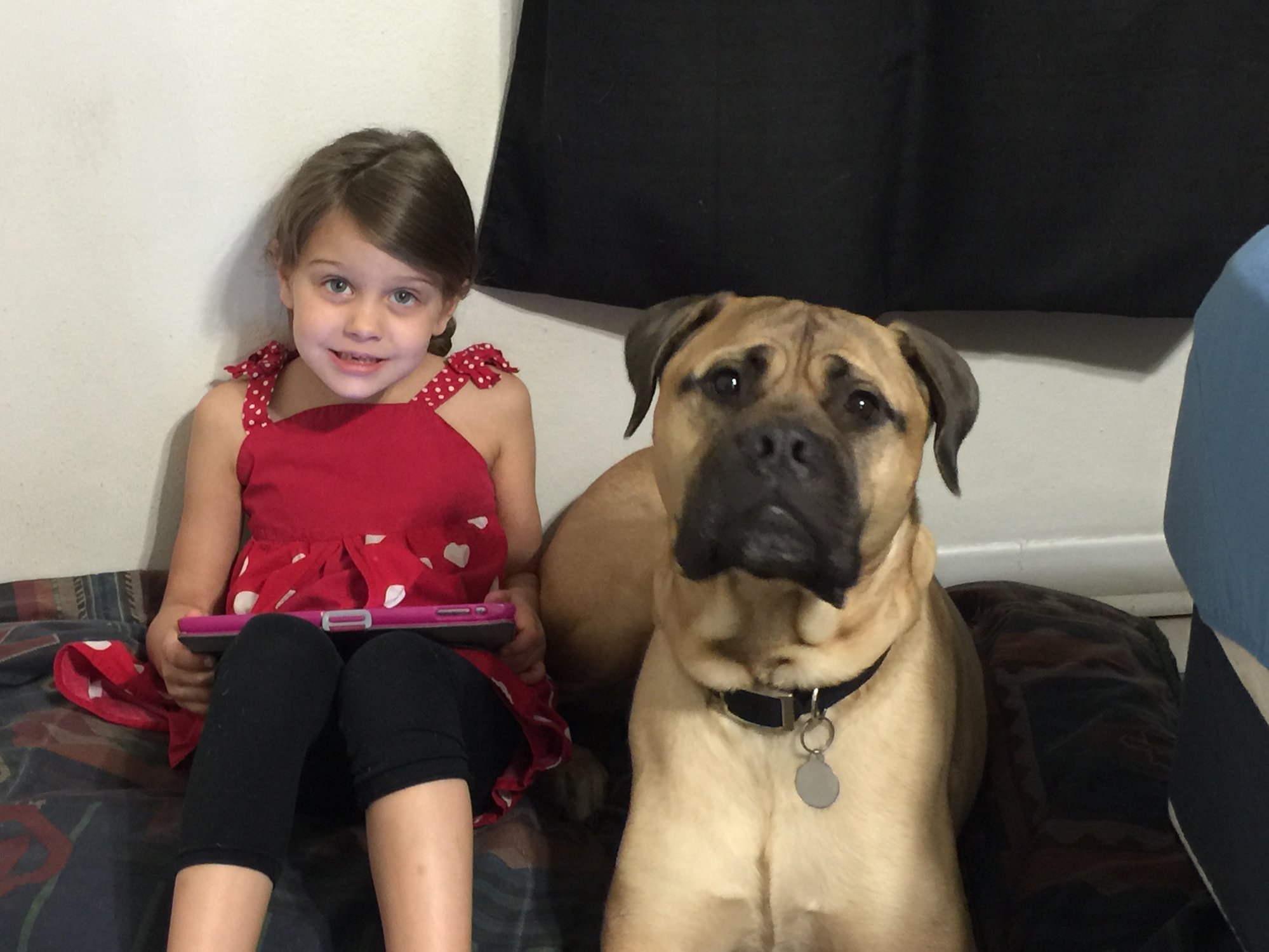 We have an American bulldog and a great Dane. Come May, we will also be adopting my in-laws kelpie / pit mix since they aren't able to take him with them when they go back to the mission field.