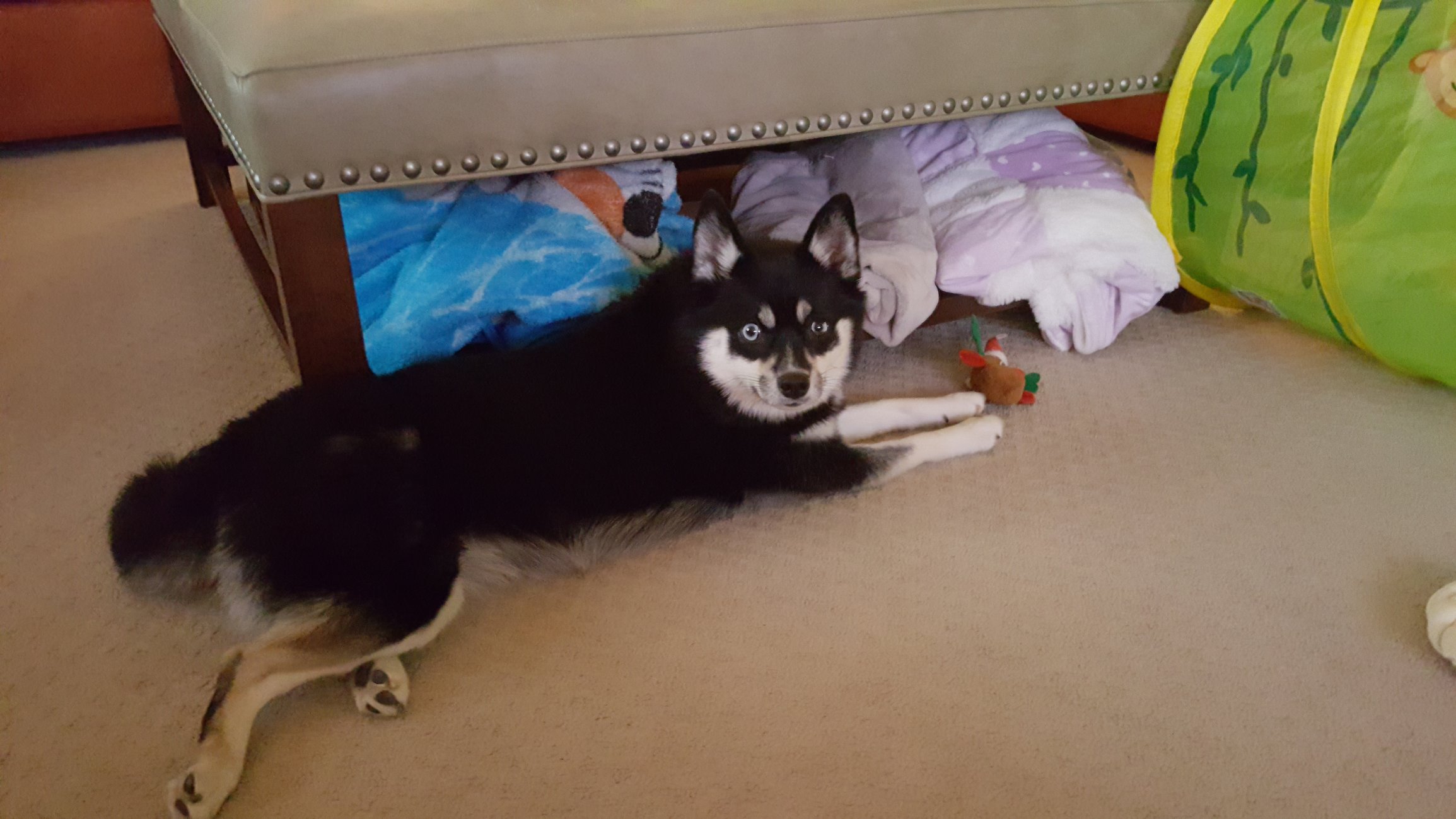 Sasha- 9 week old husky puppy. Beautiful, very smart, and 98% pure energy. The only good pictures I have of her are 3 weeks old because recently they are just a blur.