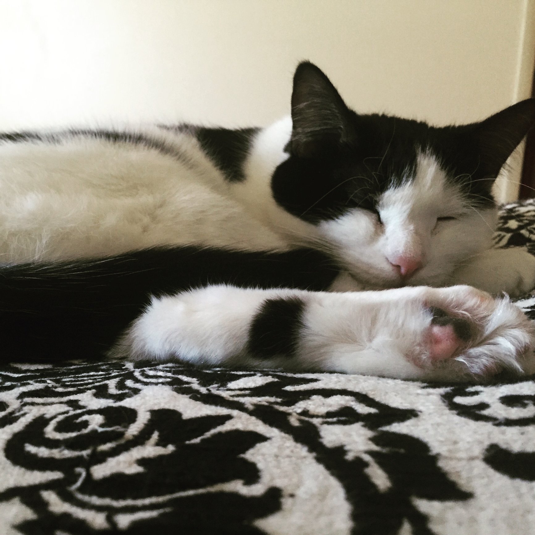 SQ (grey & white) and Raspy (black & white) are my two former stray cats, now though are extremely spoiled.