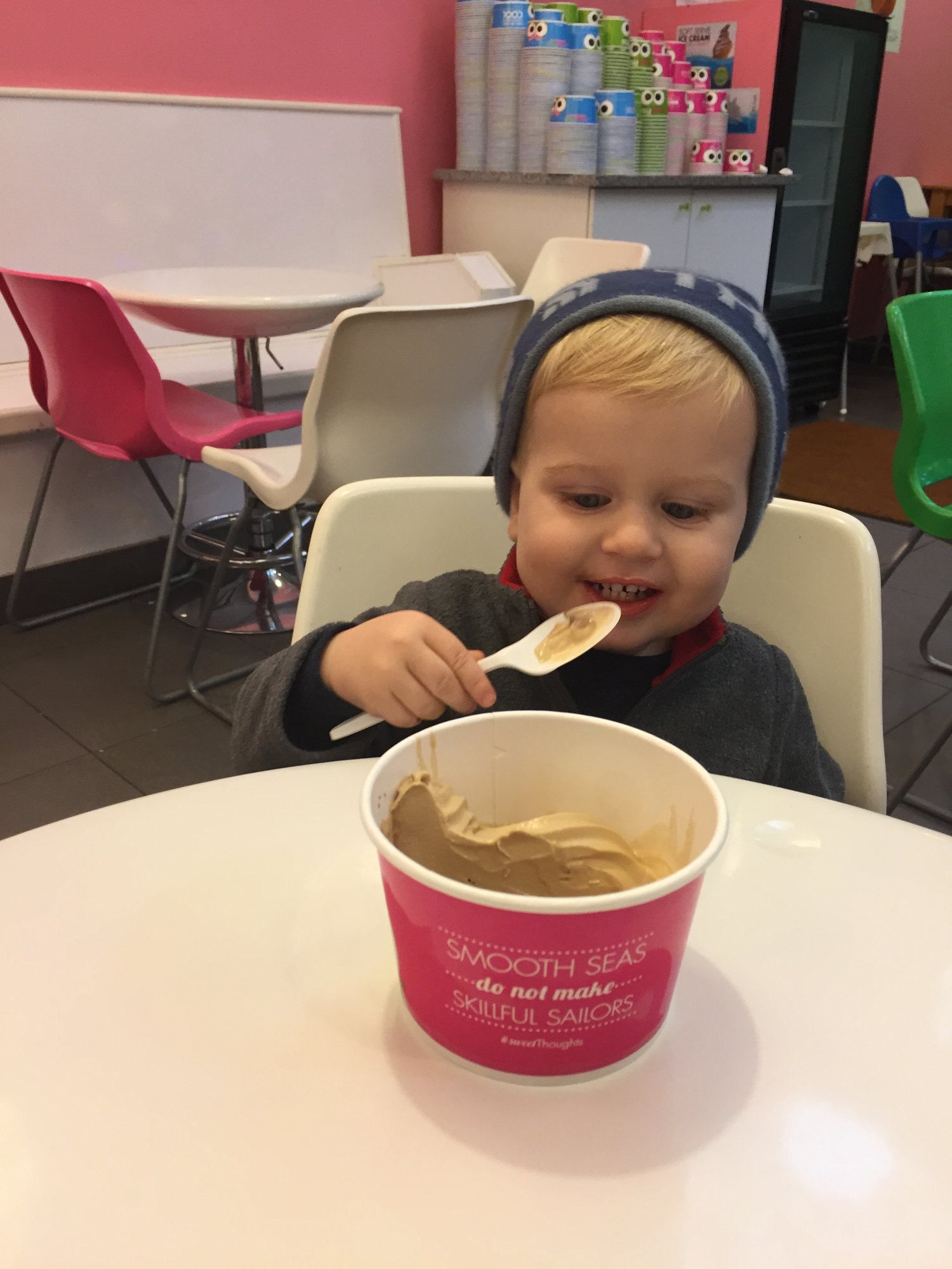 • Was craving sweet frog (haven't had ice cream in months, haven't been able to stomach it) and had it last night- went to get froyo and went to bed and woke up so so nauseous. So not worth it! But DS loved it- pic for cuteness