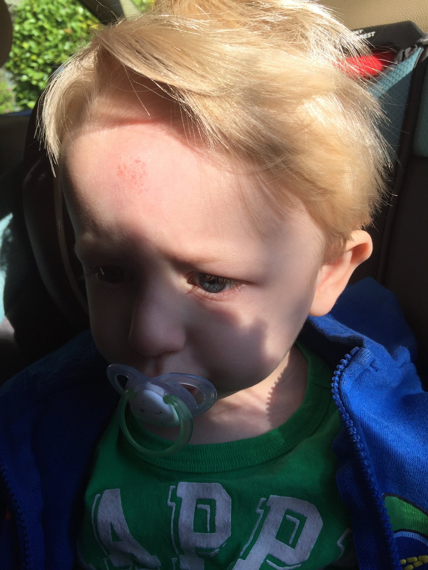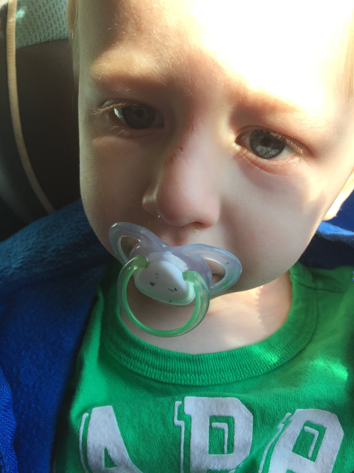 We had a little accident today. Tanner decided to fight the concrete and lost. Poor kid I felt so bad for him.