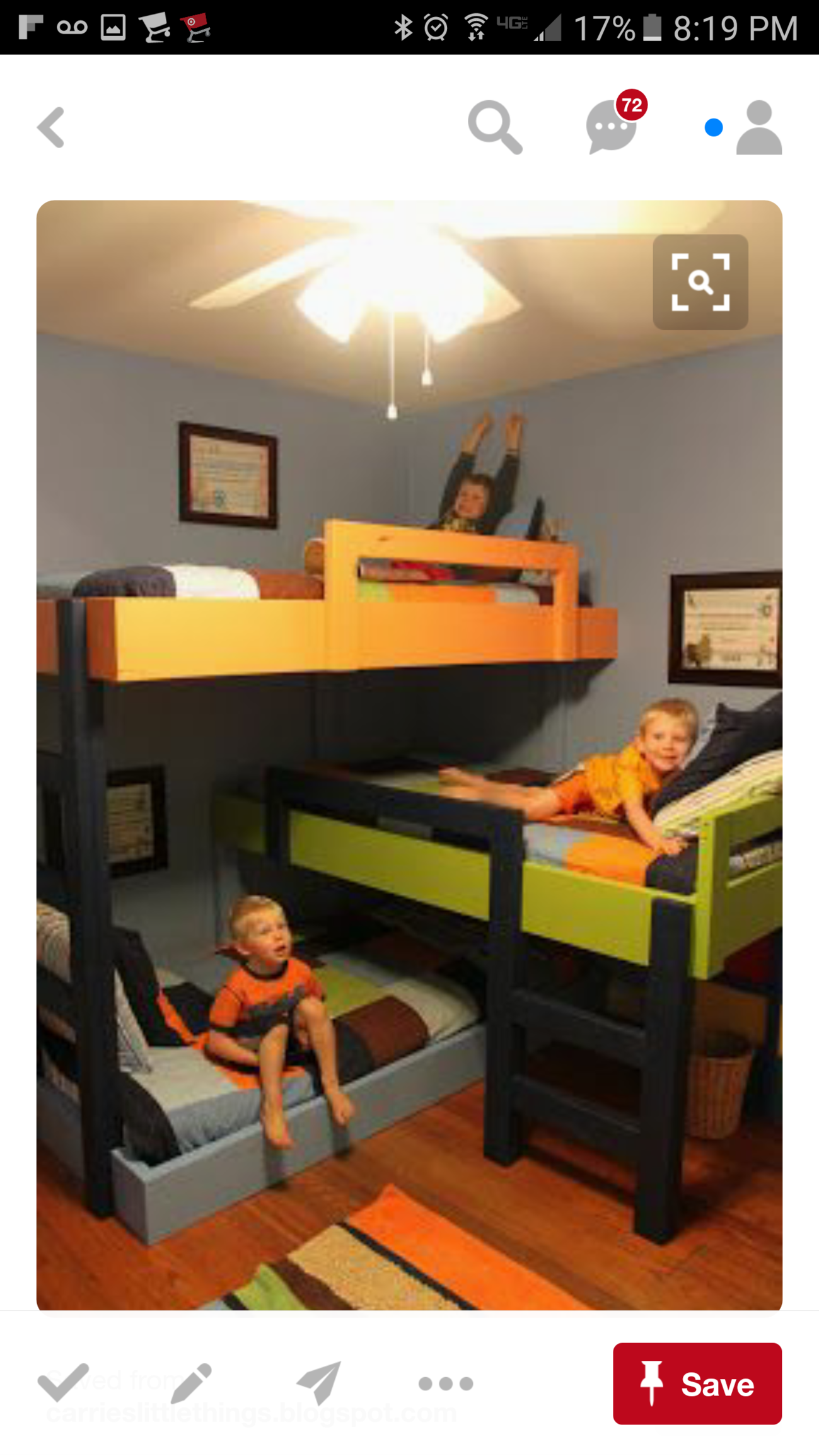 @Xath that is the bunk we are getting our boys! The way the room is configured we can't fit a second because of baseboard heating and windows so DD who is in 10th percentile for height is getting a hand me down toddler bed. Since we have 2 crib mattresses it's not extra $ for us to use the toddler bed, we were going to keep her in her crib with the side off but felt like the tradition might be better if everyone got "new" beds. We figure by the time new baby is big enough to transition we will give the girls the Kura and graduate the boys to a real bunk. My younger ones can both climb the ladder on the kura already because they are monkey's so I'm interested to see if they all just end up in the top bunk every night.