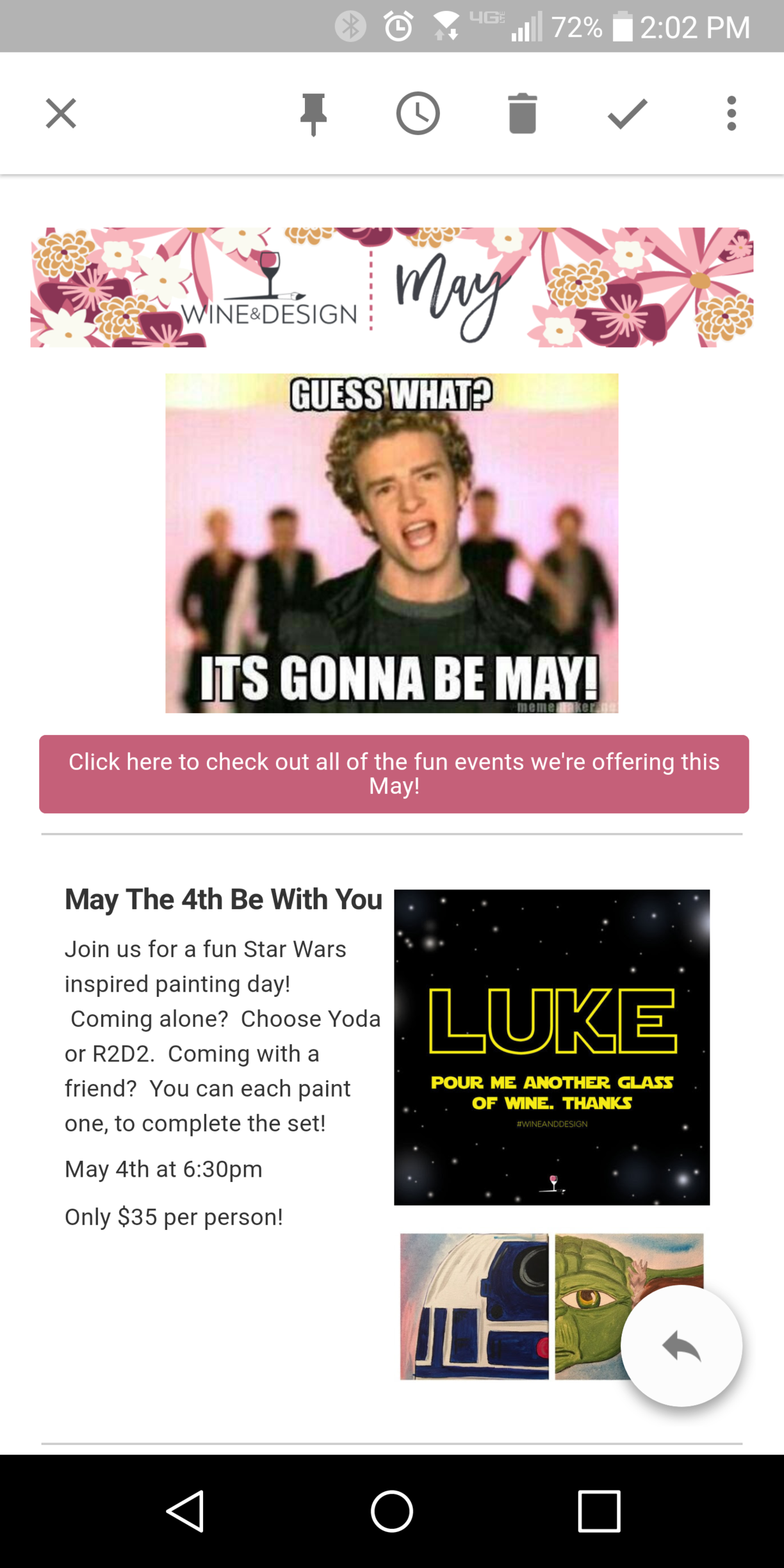 I just got this email from my local paint and sip location. I'm trying hard to find a reason not to do a class this month lol (giant picture in spoiler)