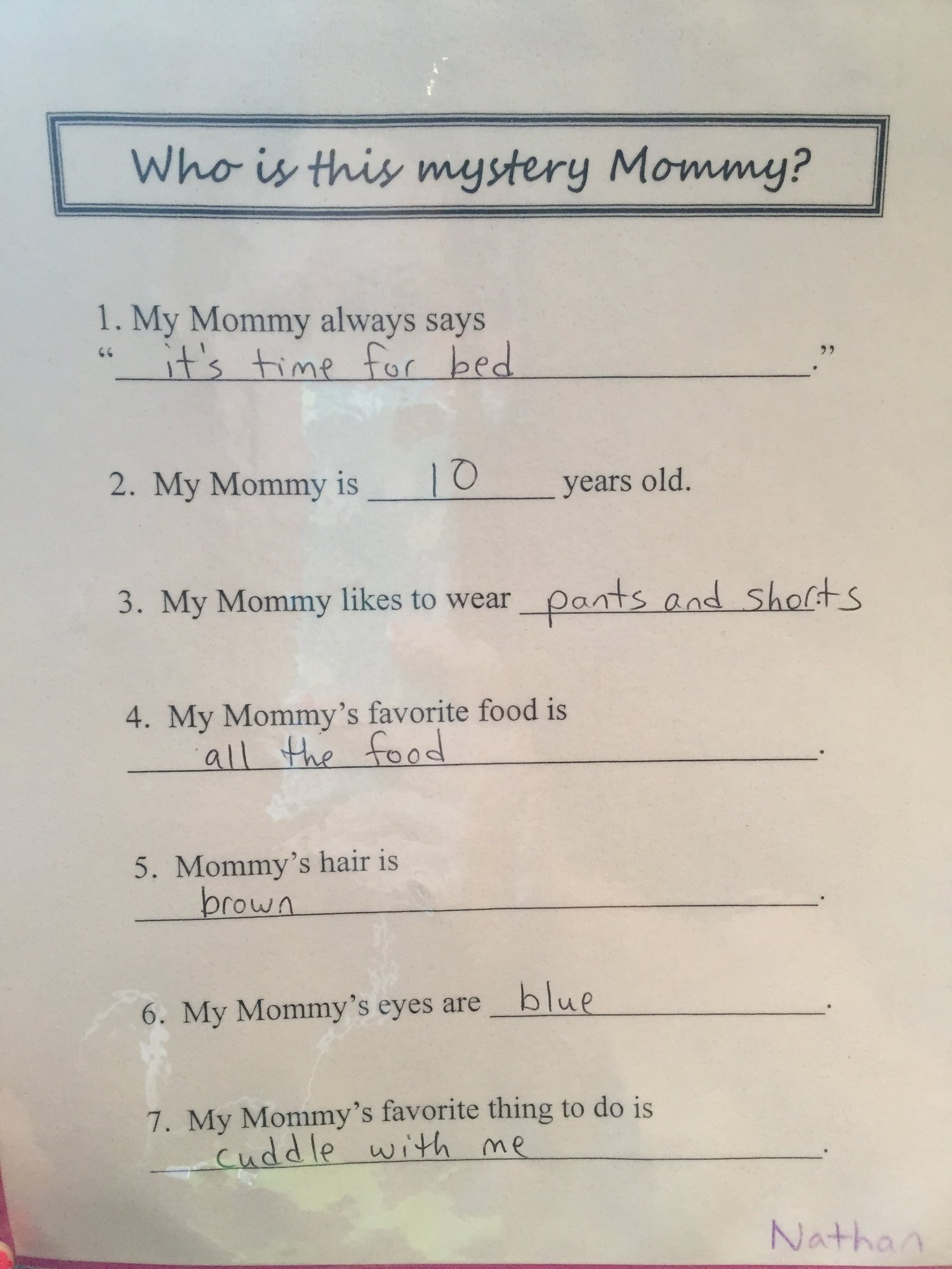 Mother's Day Tea at my son's preschool was stinking adorable today! I especially loved the mommy survey. I'm so wiped after my day though, and I don't feel like I did all that much! His survey answers: