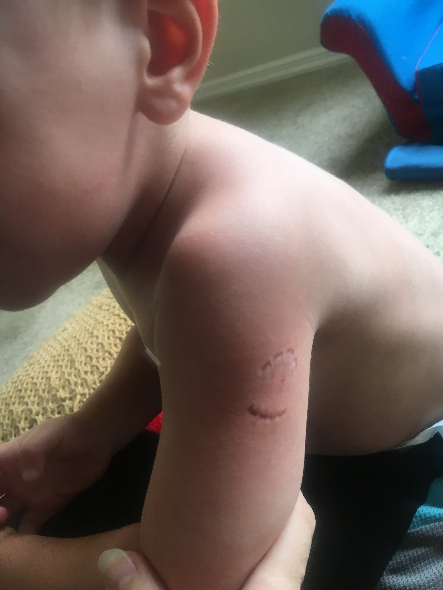 I feel like all I'm doing is bitching today. The almost 2yo I babysit just did this to DS, and scratched him on the face hard enough to break skin for the second time in a week. I finally texted his mom that I quit. I was planning on quitting today but giving her a month to find a daycare. I just told her no more after today after this bite. It's the FOURTH good bite he's given him.