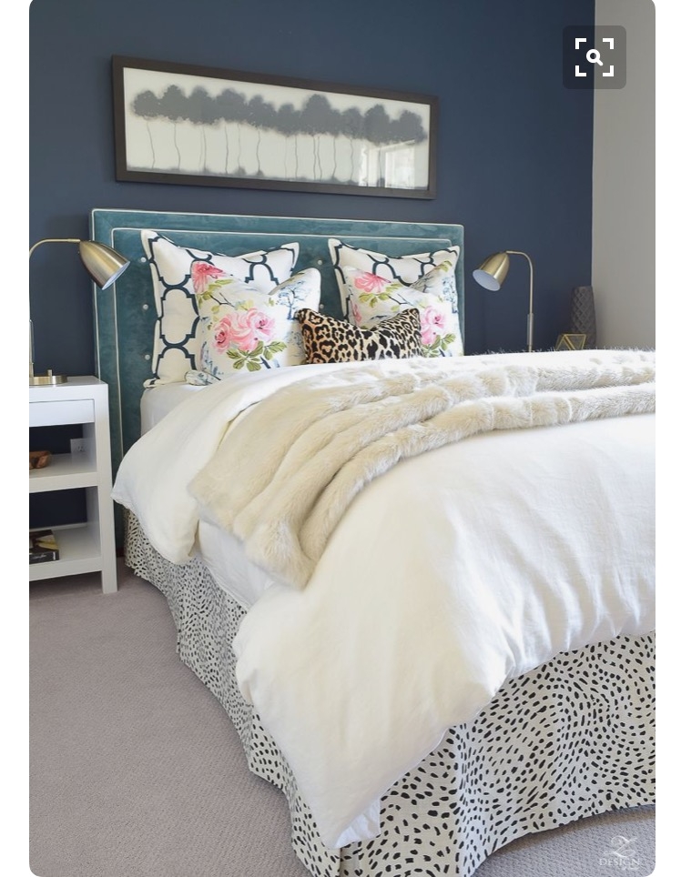 I think I may do a textured/rouched white duvet and colorful pillows. Maybe even sheets with a pattern. We bought a grey tuffed headboard off Wayfair and I want to do a grey bench at the bottom of the bed.