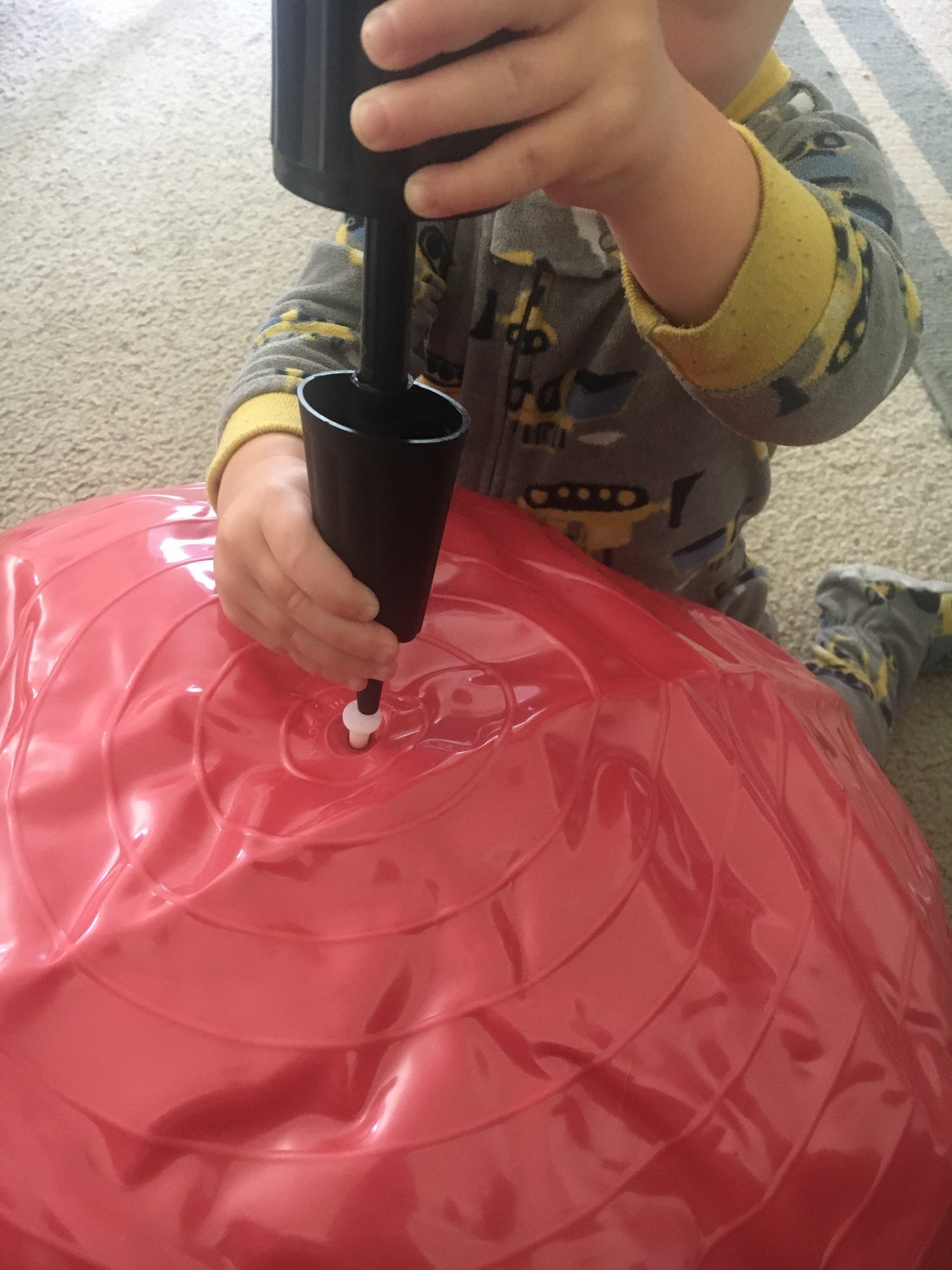 On another note, I got one of those giant inflatable core strength balls to sit on since my hips already hurt. DS is "helping" me blow it up with that tiny pump that comes with it. So maybe it might be inflated by 3rd trimester lol but blowing air up his own nose with the pump and pretending to inflate all his toy balls is keeping him occupied, so I'm just going with it. I keep asking for it and he says it's not my turn yet.