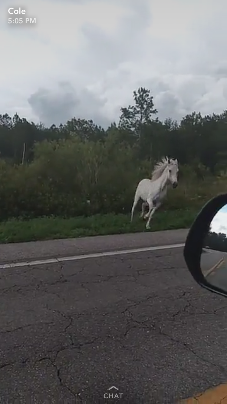 Lol we live in an area that is rapidly developing but until 2-3 years ago was mostly cow pastures and small farms, so it's not super odd to have a cow or something blocking traffic. First time for a horse and it was so majestic!