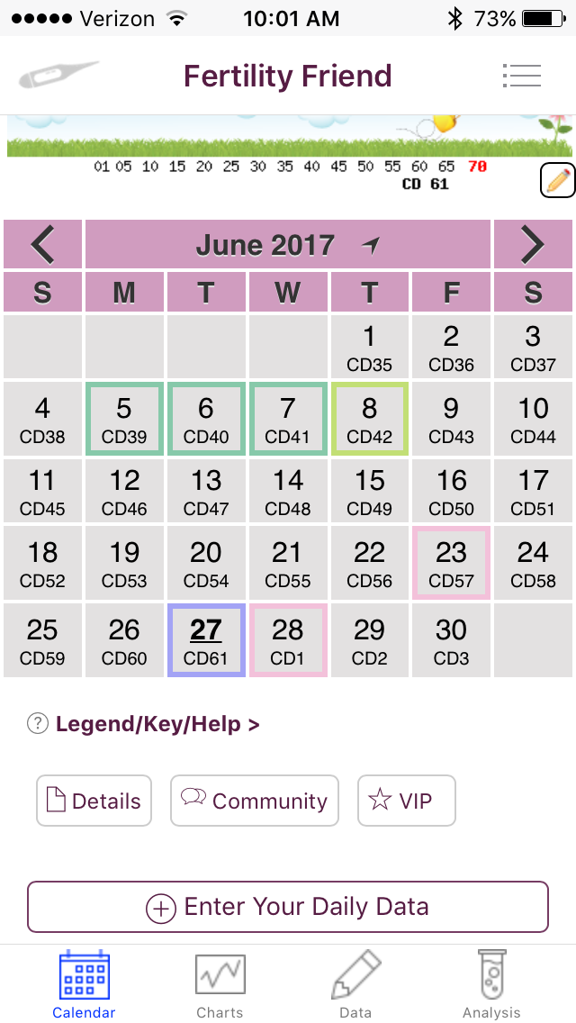 So I just signed up for Fertility Friend. It doesn't like me right now. I put my last period in for back in April, and it's telling me to please input a recent period so that I can start charting. Sorry, FF. I don't HAVE a more recent period. Guess I'll have to wait for the Provera to do its thing before really being able to chart again. Not that I have anything to chart right now. I'm just feeling enthusiastic today about moving forward. Also, I'm about to have to update my signature because I forgot that I turned 31 this year until I had to input my birthday in FF. Whoopsies....