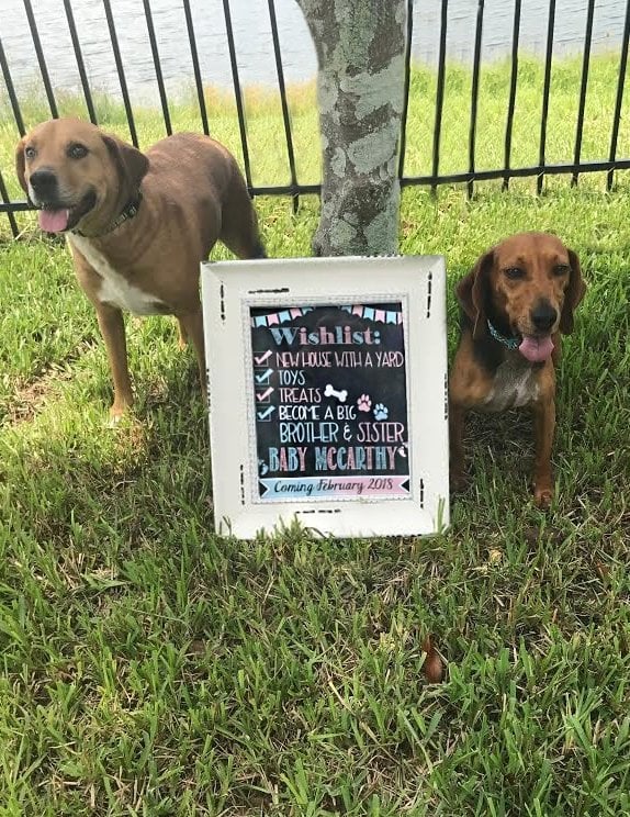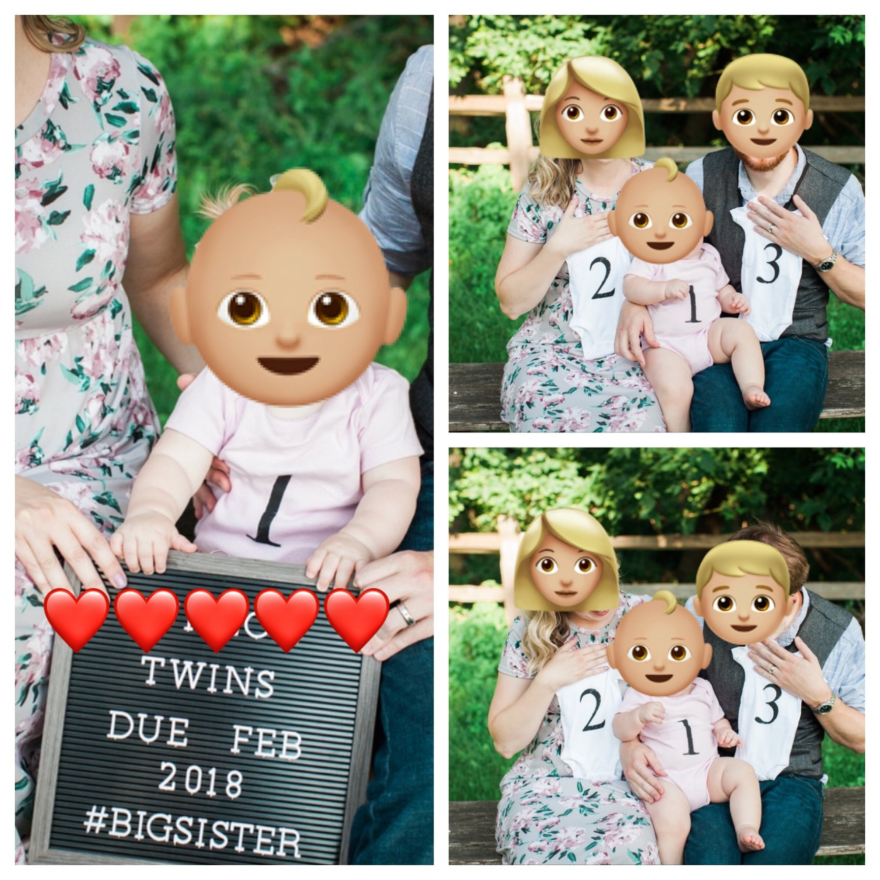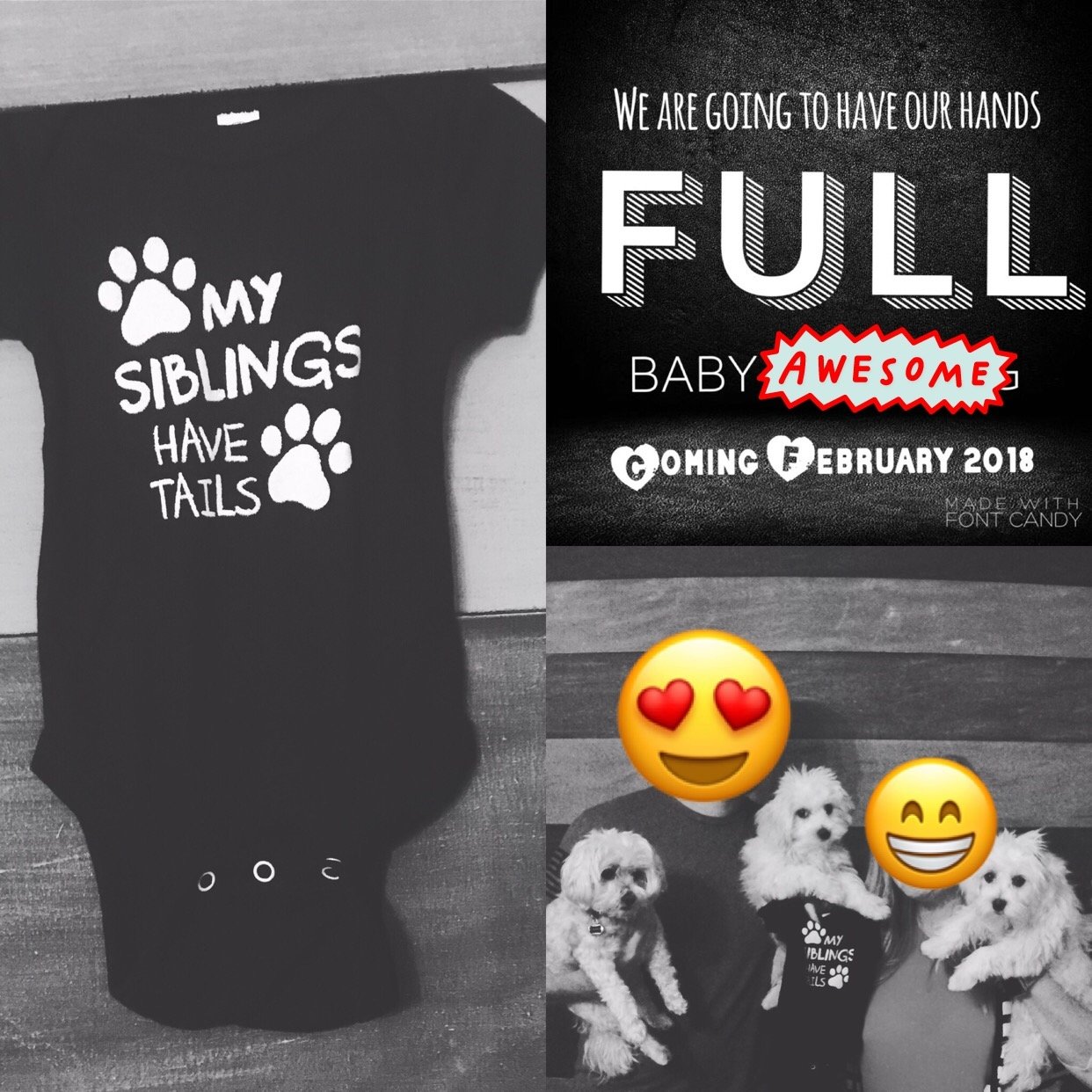 We announced today with this photo and also a photo of DD wearing her shirt and me holding the onesie up to my belly.