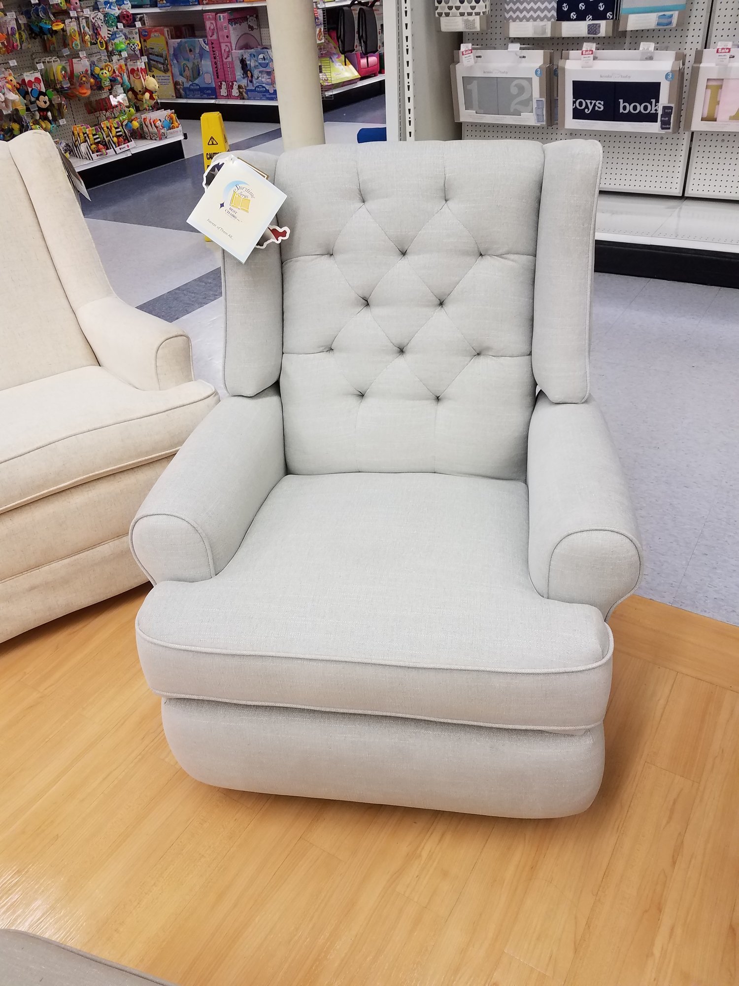 I also looked at Pottery Barn Kids and BuyBuy Baby for gliders, but the one at Babies R Us was my favorite (even though I like those other stores better in general).
