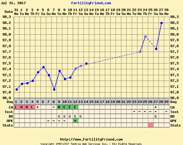 Yes. I am typically anovulatory. I usually only have two periods a year without some sort of help. Which is why I was so thrilled by this cycle. I haven't charted temps very long, usually because there's nothing to chart without getting a period, you know? So I have no clue about baseline coverline over a long term. I have charted my two medicated cycles from my last pregnancy and their baseline is 97.4 and 97.5. Not sure if being medicated made a difference.