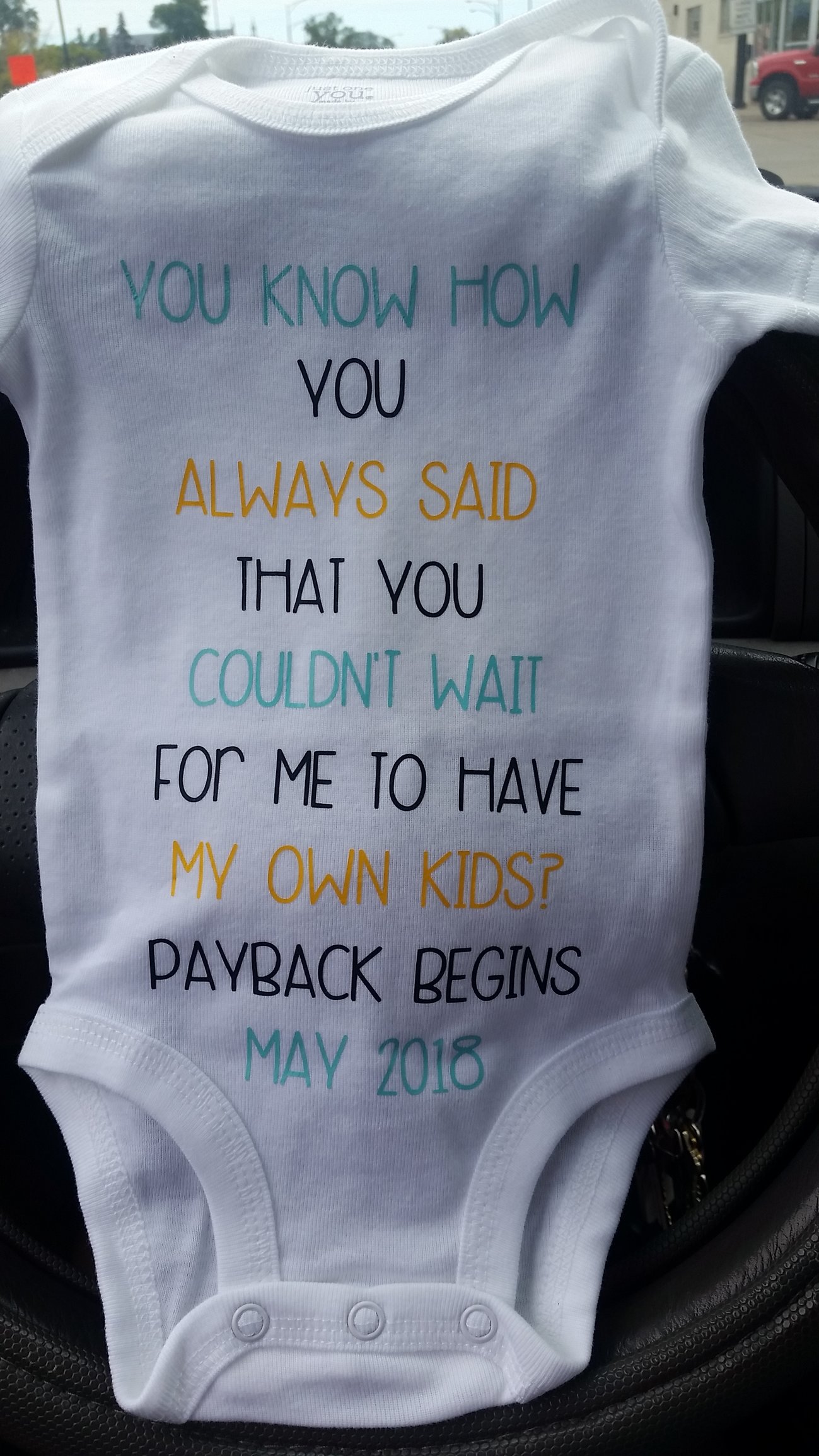 In two weeks we are going to visit my brother and sister in law in CT, we are going to wear "Mama" and "Dad" shirts and see how long until they notice.