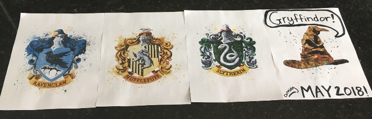 Just printed these off. Just need frames and my 3 other kiddos to hold one each (surprisingly they all have distinct hogwarts houses personalities) I'll update when I get the pic!
