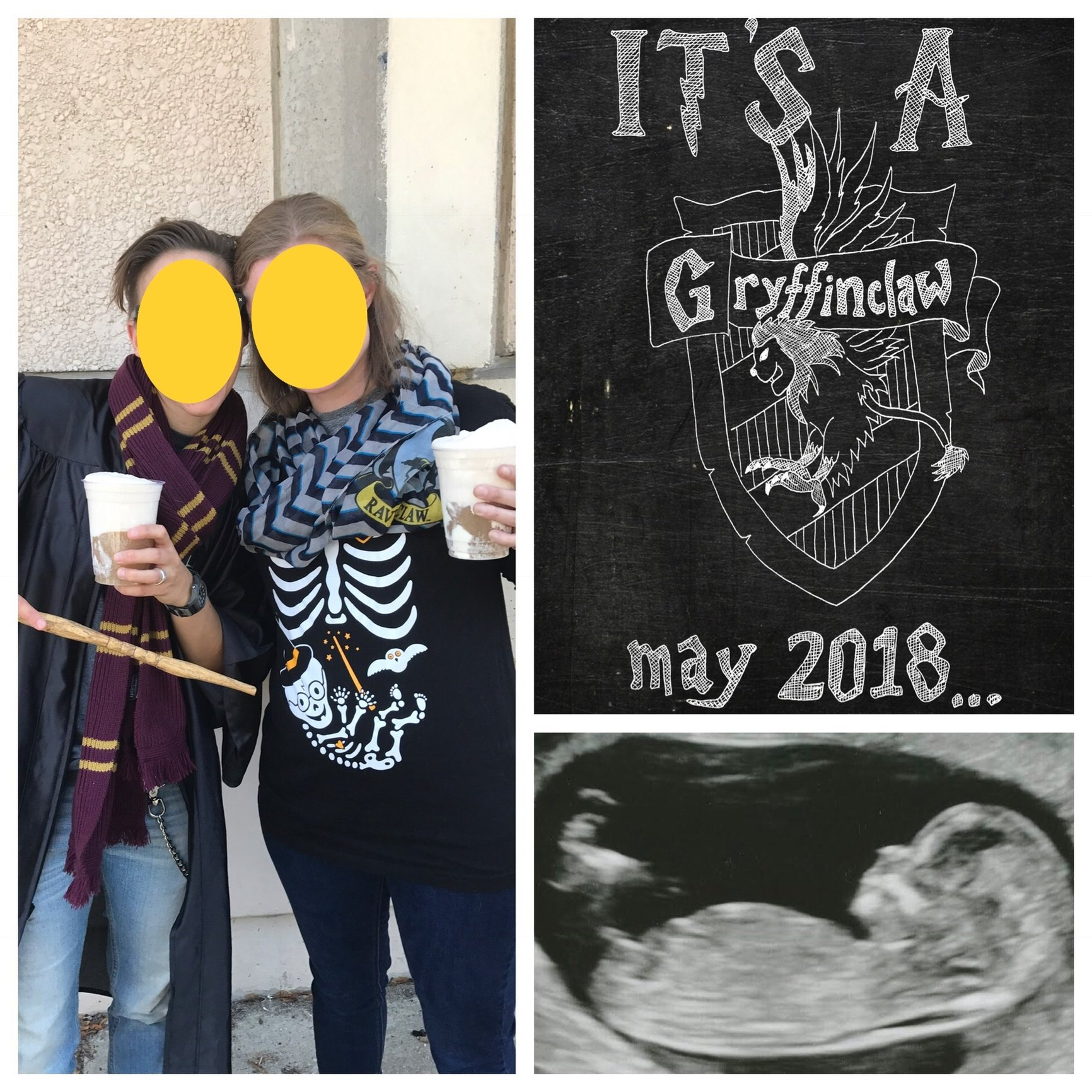 Took our super nerdy announcement photo at the Harry Potter festival today! My wife drew the “Griffinclaw” part. Lol. Saw another woman there in the same shirt too!