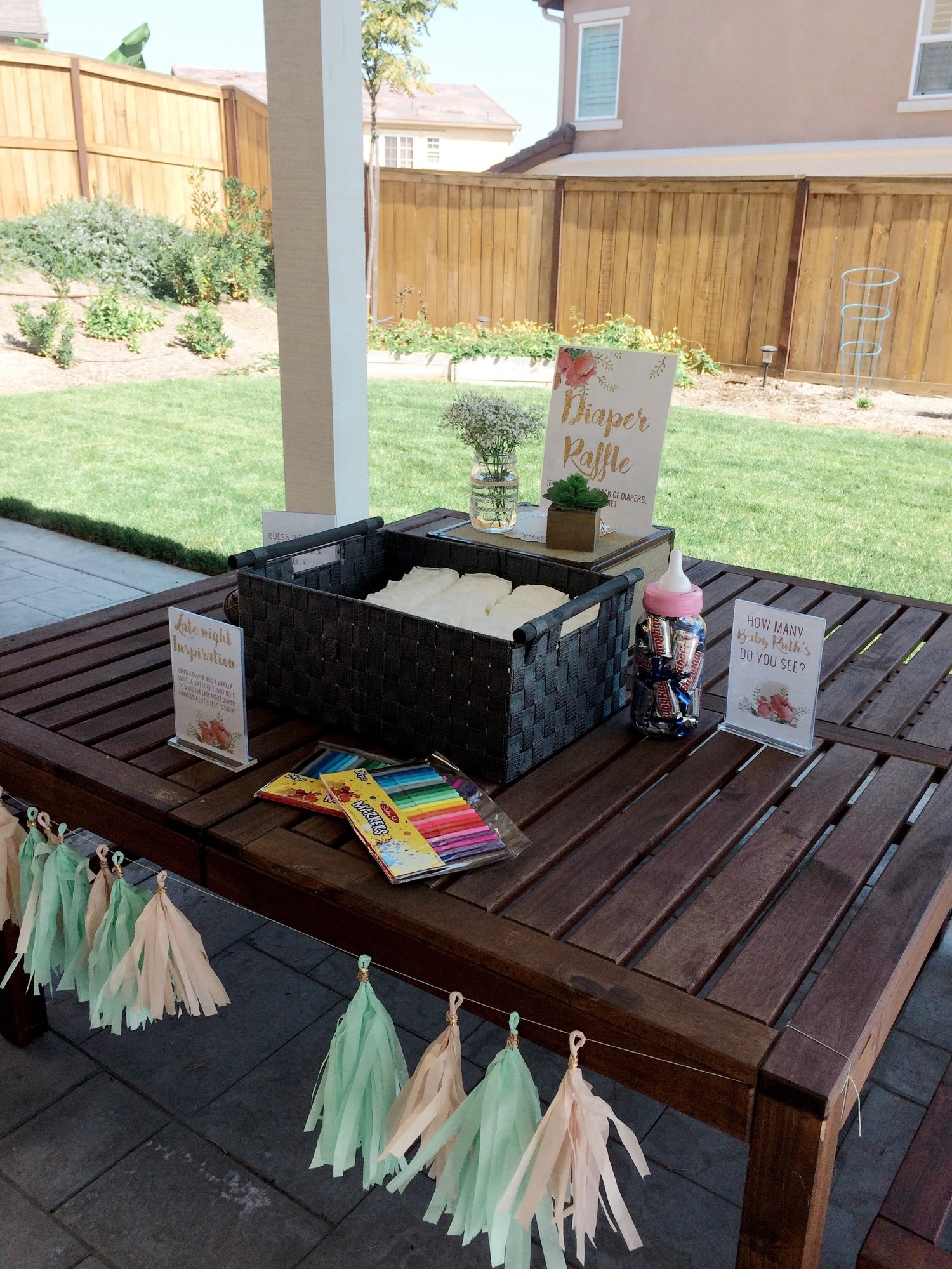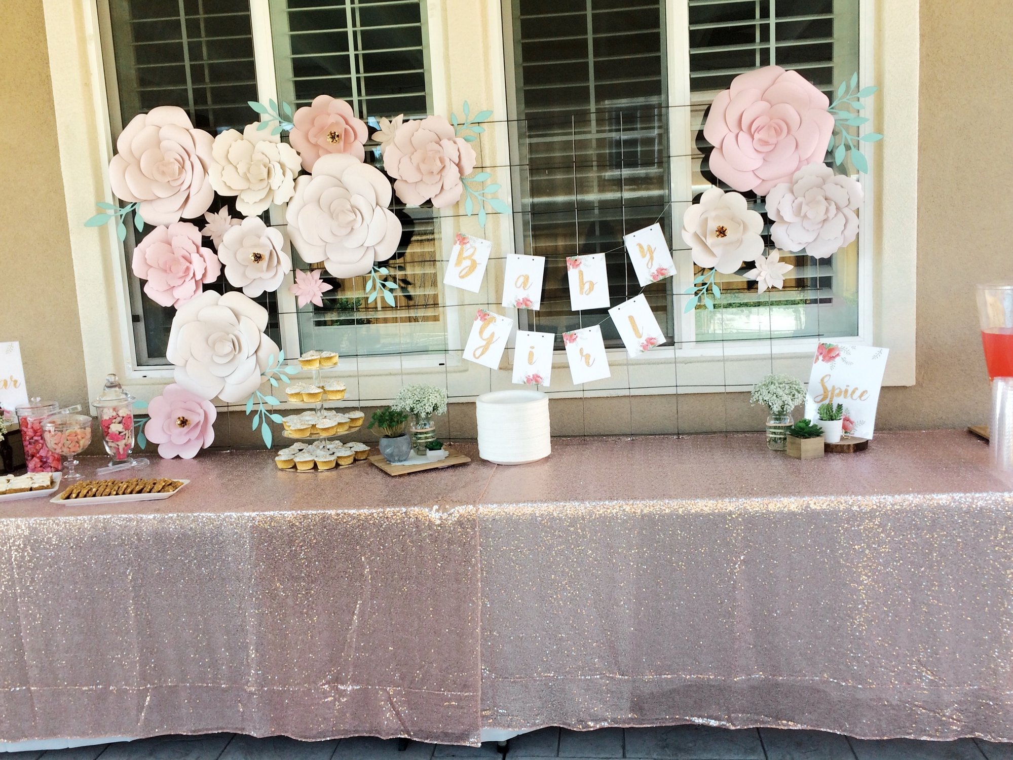 I have been MIA because my life has become CONSUMED with preparations for my SIL’s shower. I am happy to report that it’s DONE!! Woohoo!! The theme was, “sugar, spice, and everything nice...that’s what little girls need are made of.” It came together beautifully, but because I was running around like a chicken with my head cut off, I literally took zero pictures. I’m so sad because photos are my thing. Thankfully my niece snapped a few pictures while we were setting up, so I have a few of some of the decor in mid-setup. I just wish I had pictures of it when it was all done. Oh well. I’ll just be content with the ones I have! Anyways, here are a few photos from the day. I’ll be happy if I never have to make a paper flower again...