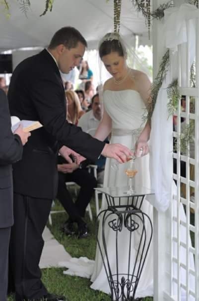 Was it or will it be traditional? If not, what will be different? If so, what is your favorite aspect of the traditional ceremony? It was pretty traditional. Since it was outside, instead of a unity candle, we did a unity drink. Normally, it's done with wine, but we opted for grape juice instead. I poured white juice into a cup while DH poured red juice into the same cup then we each took a sip.