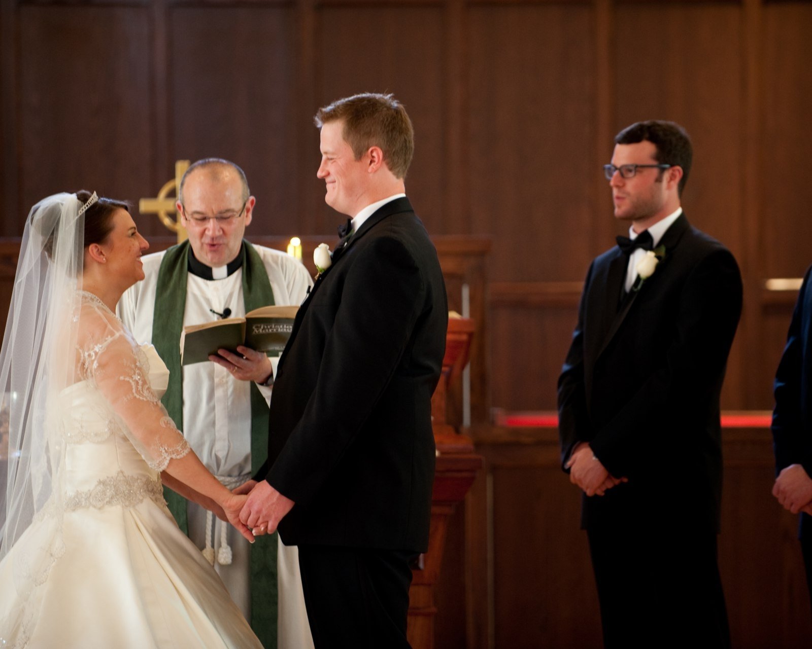 It was traditional. Dad walked me down the aisle, we did traditional vows, all that.