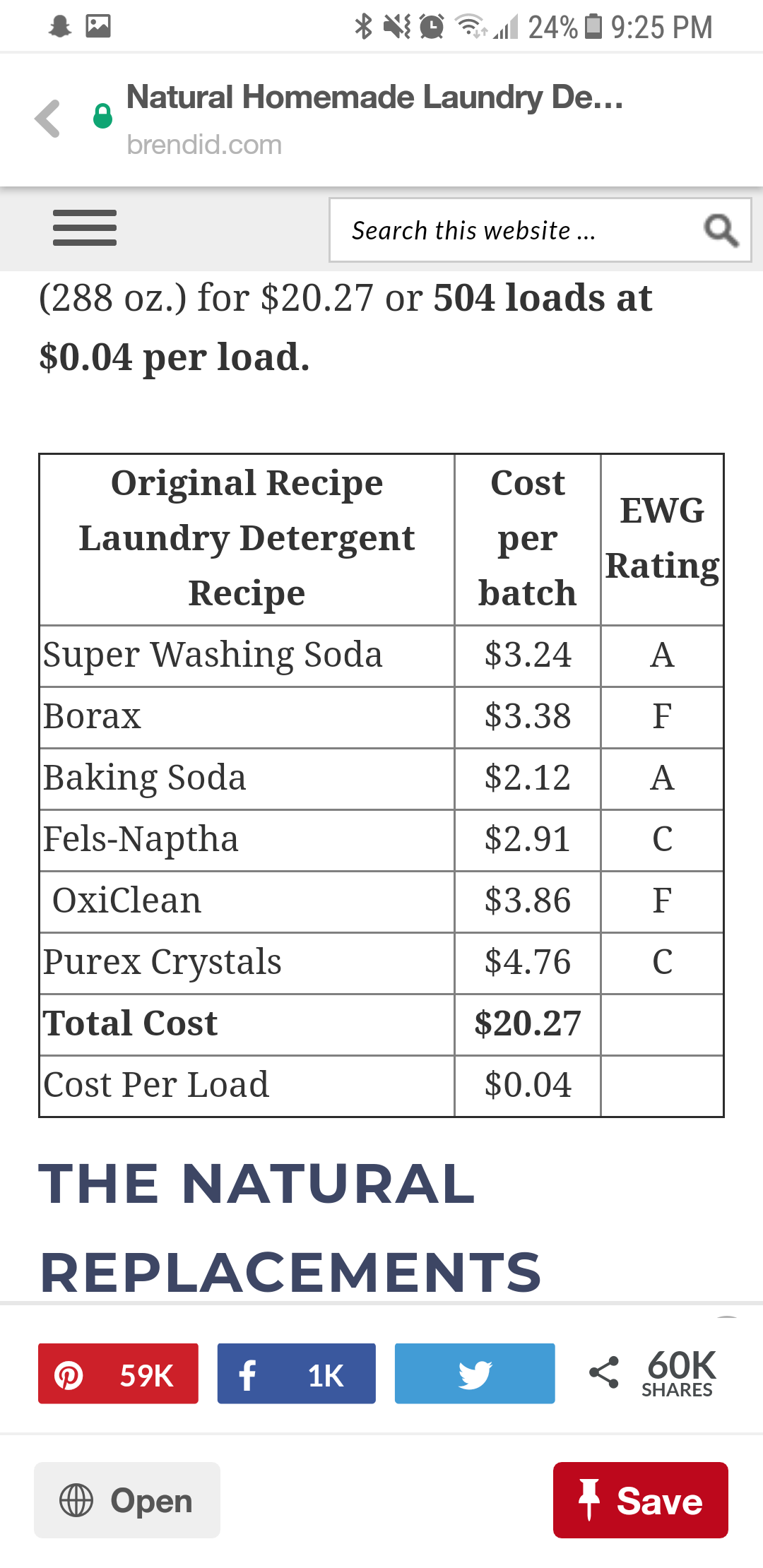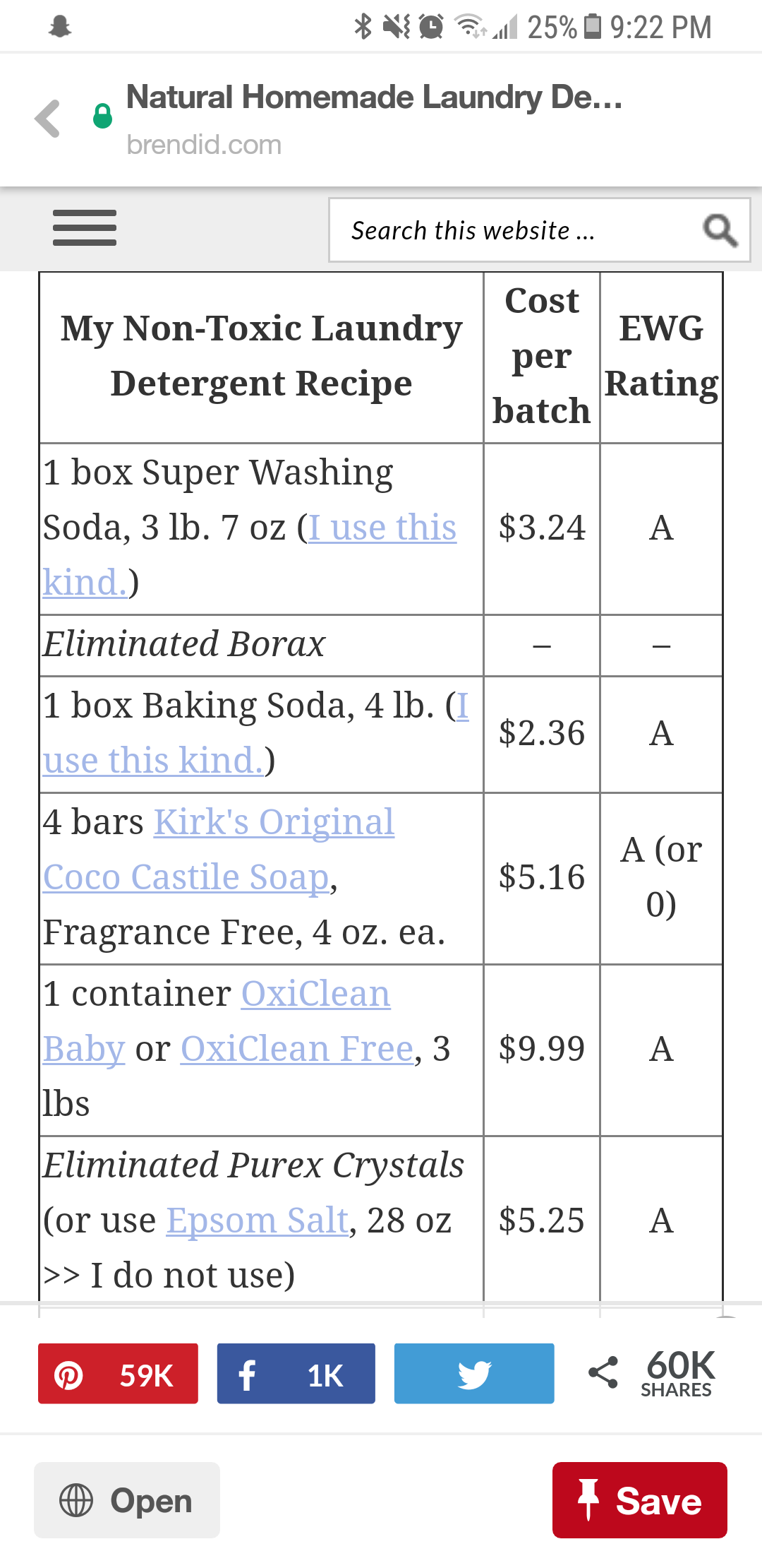 @sunshine27shy That is the exact homemade detergent recipe I used to use and loved it for the most part but I found that after a while SO's work clothes and my workout gear developed a BO smell that never quite got washed out. So it was back to commercial detergent.