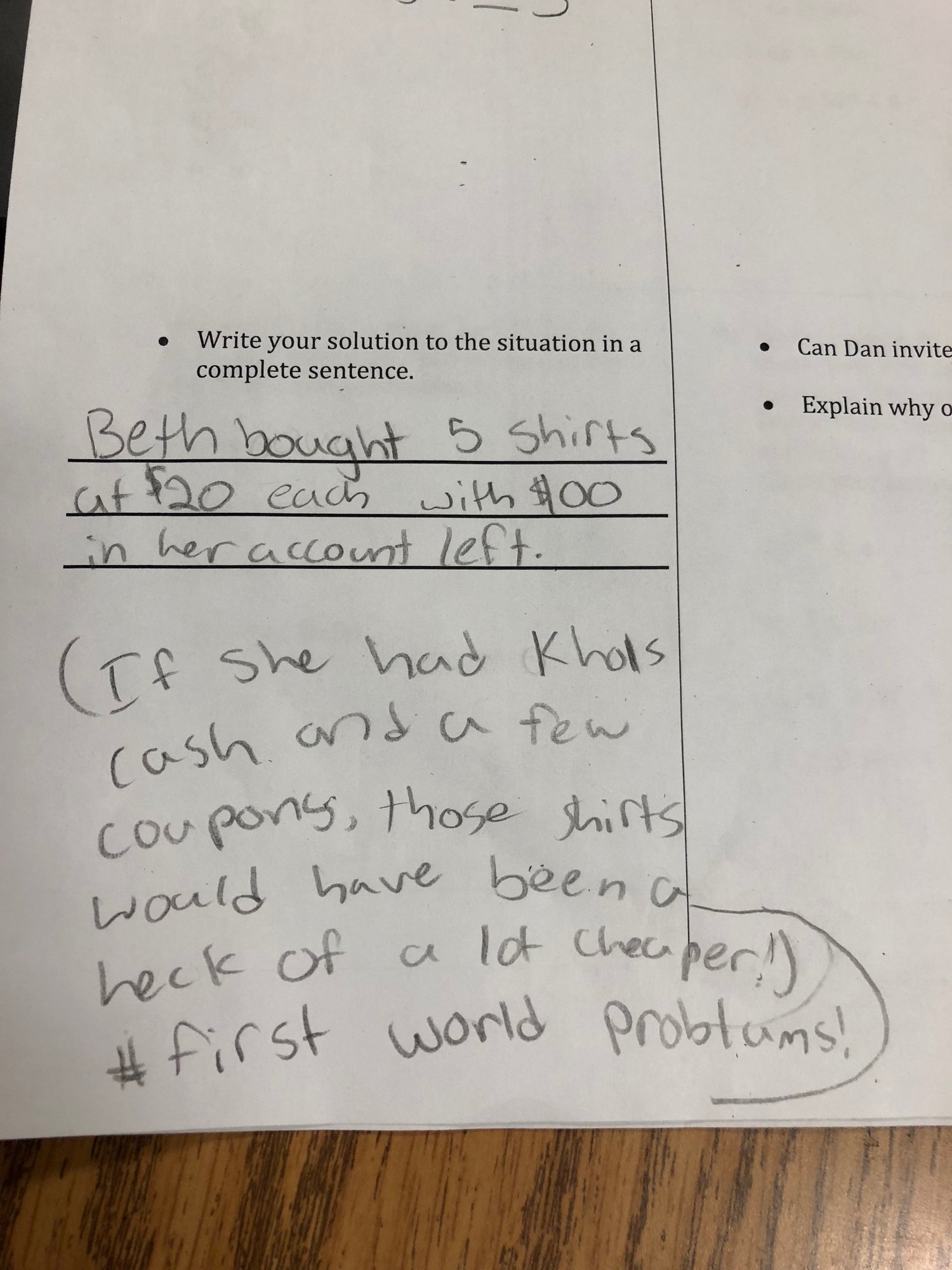 My daughter turned in her math test, and this is what the teacher found