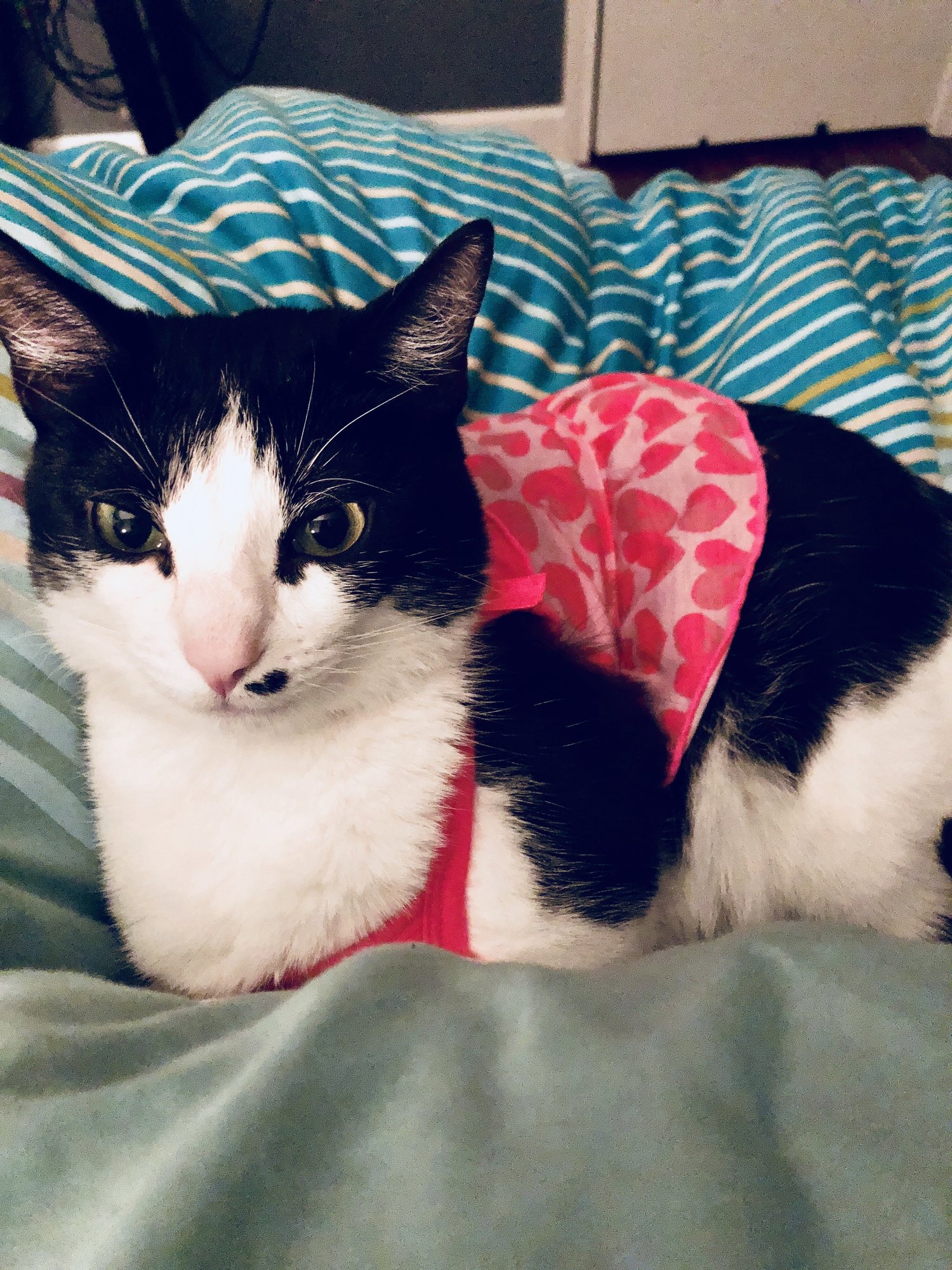 @jrm_14 Awwww what a sweet face! It looks like she has a little black heart on her mouth. What kind of cat is she?
