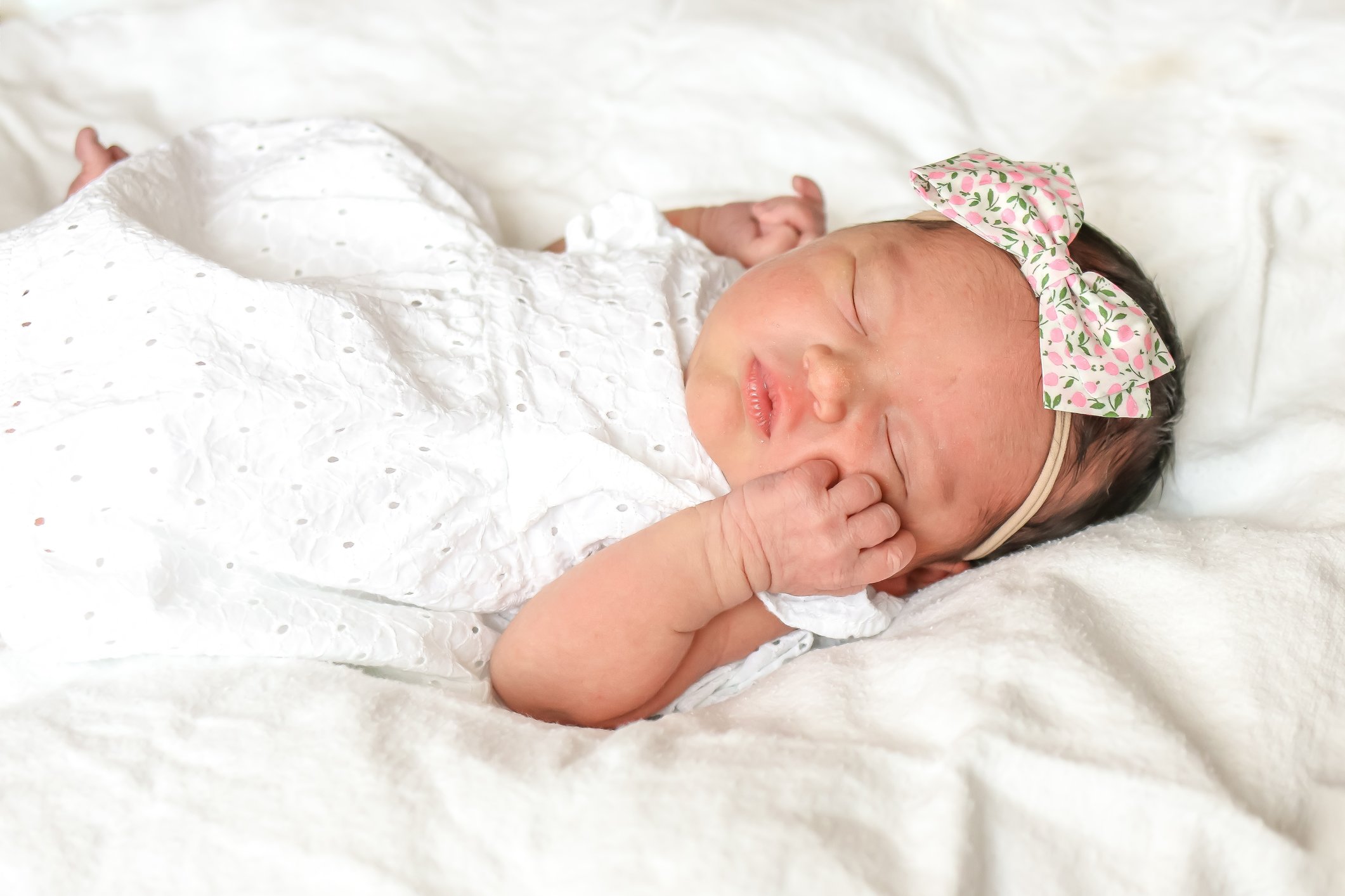 We got our newborn photos back and I am in love with how they turned out! We will be making a Shutterfly book for all the grandparents and great grandparents of our faves but here are a few that I absolutely adore! Her hair has some red to it, which we have no idea where that came from! Both DH and I were so blonde as kids and are now both dirty blondes. My mom said her grandfather may have had reddish hair so maybe that’s where it came from?