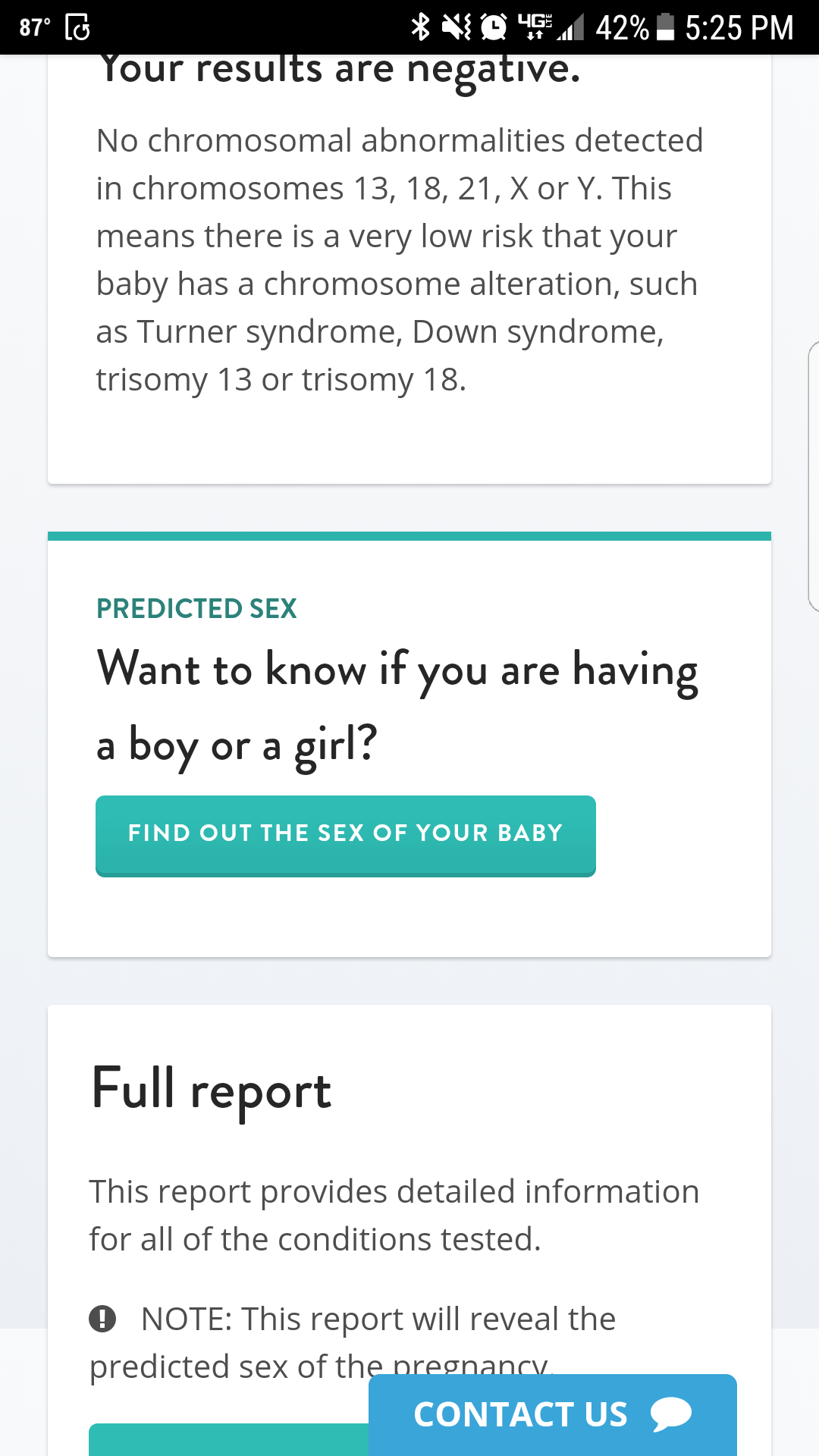 @wkuandrea Yes, my testing was through Counsyl. They have one page that shows the high- level results for the chromosomal stuff, then a link that says something like "click here to discover the sex."