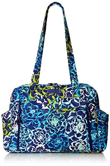 It can be carried with hideaway backpack straps, a long messenger/crossbody strap, or the regular handles. That was my biggest "requirement" because that makes it functional for babywearing at various stages. It comes with stroller straps, too, although last time I just used a carabiner to hook the straps together to carry a bag on the handle (because nothing fit under our stroller). It seems like a decent size, maybe a little bigger than my ideal but I think I'm being overly optimistic about carrying a minimal amount of stuff around!
