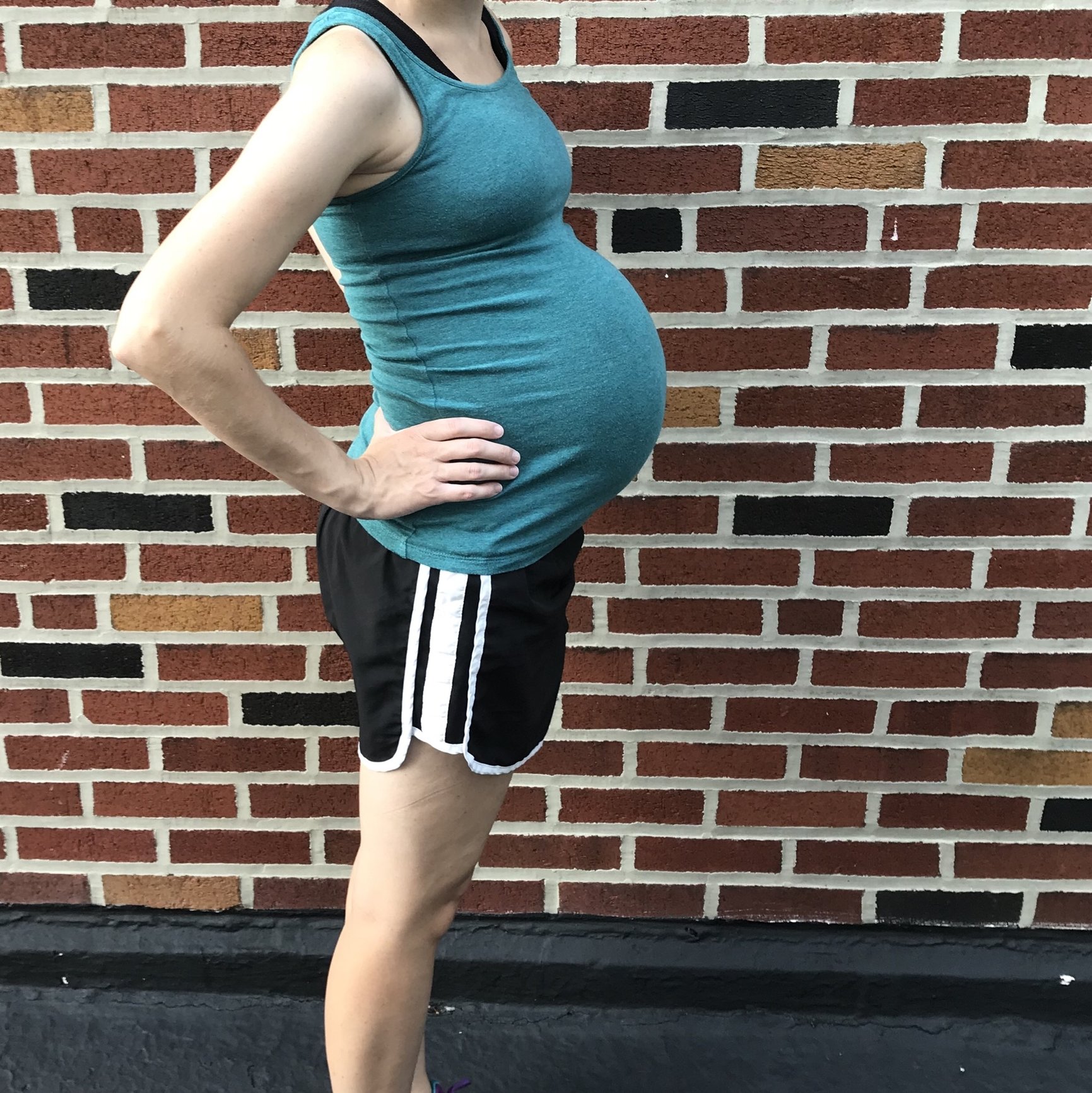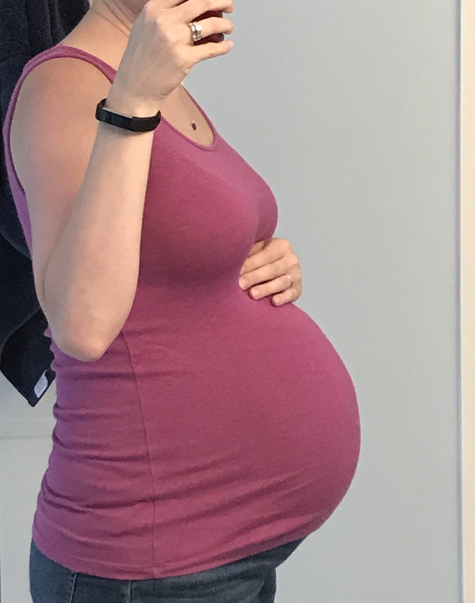 34w5d! I wonder if this LO will be as big as my last. You get creepy headless pics until we move to Facebook (/if we move / if you keep me). I’m a weirdo about posting things on TB. -ETA #4 and since my last was almost 11 pounds, I know this bump will be even more popping soon!