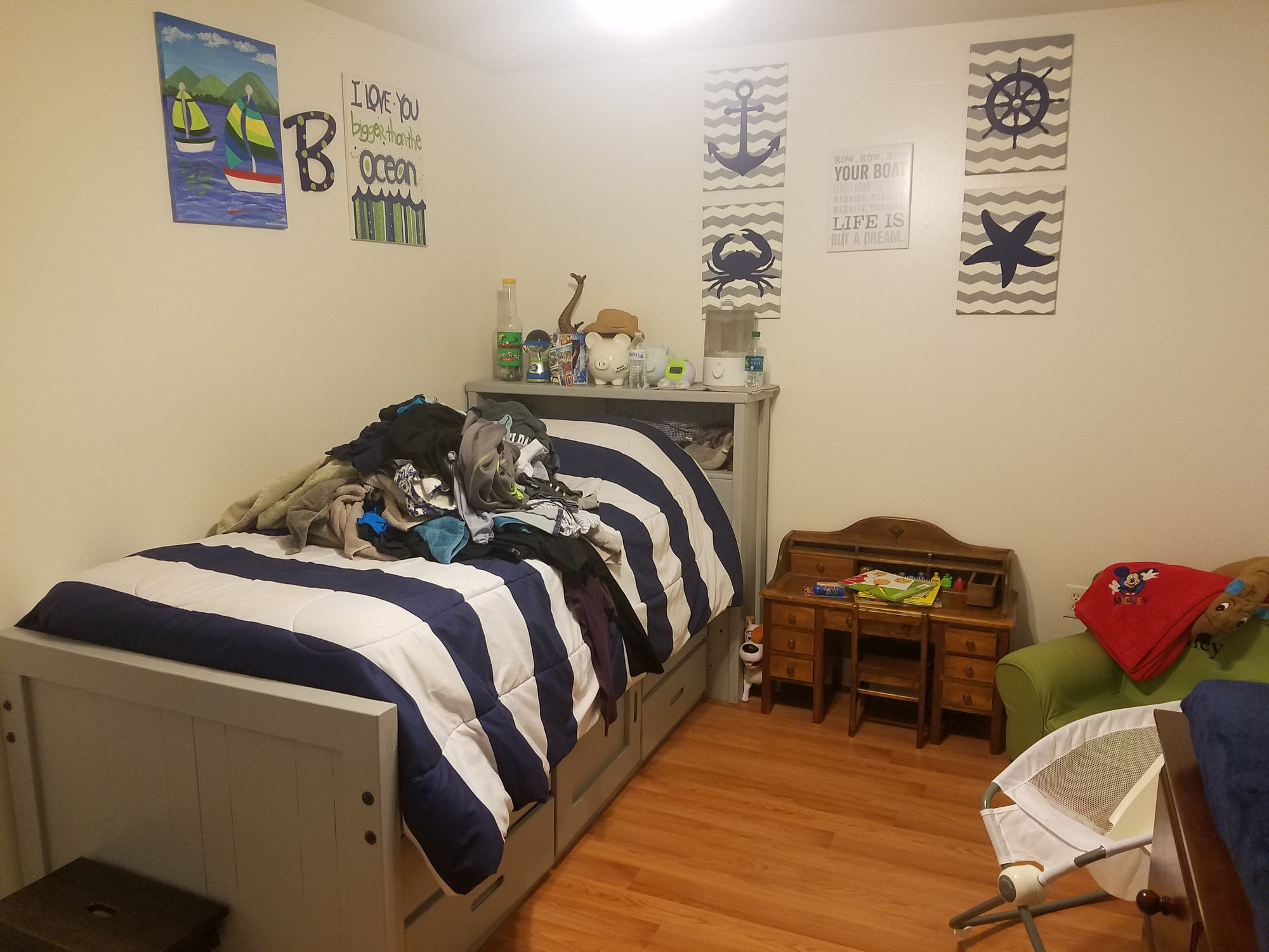 I reorganized DSs room to put the changing pad back down, rehung wall decor (we repainted a few wks ago) and where the rock n play is will be where the crib goes if we're still in the house feb/march time (the chair and desk would move the the playroom)