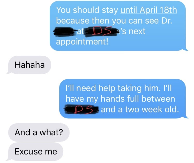 DH told one of his coworkers because he doesn’t have a Facebook daddy group to share with. I get it. He wants to tell everyone. He’ll tell his nurse at a dr appointment because he’s just so excited.